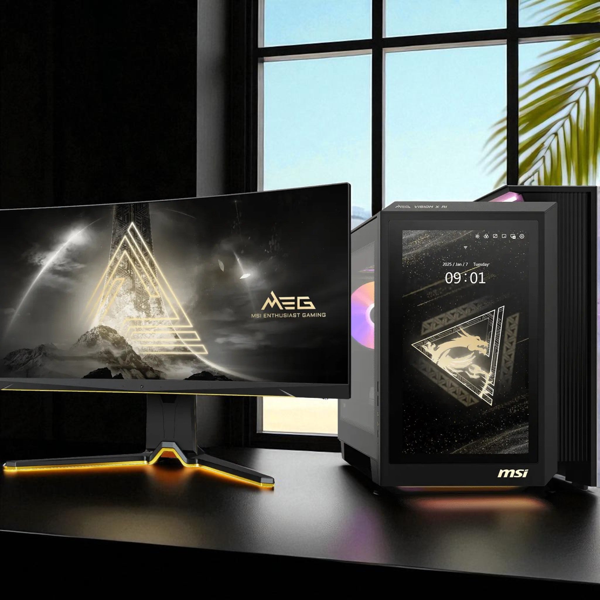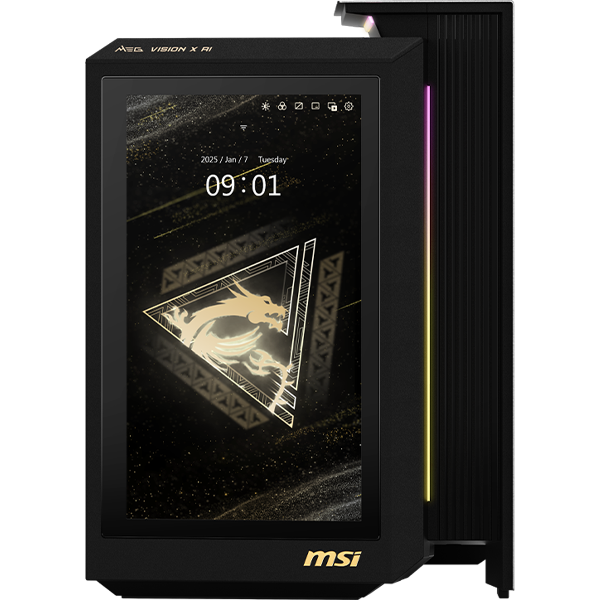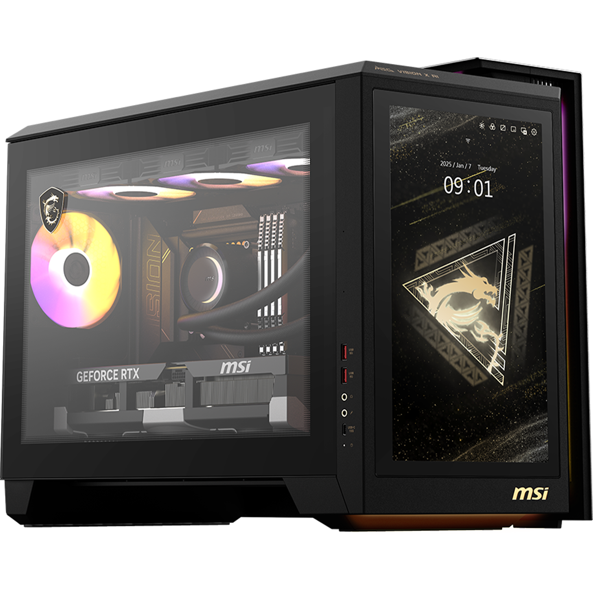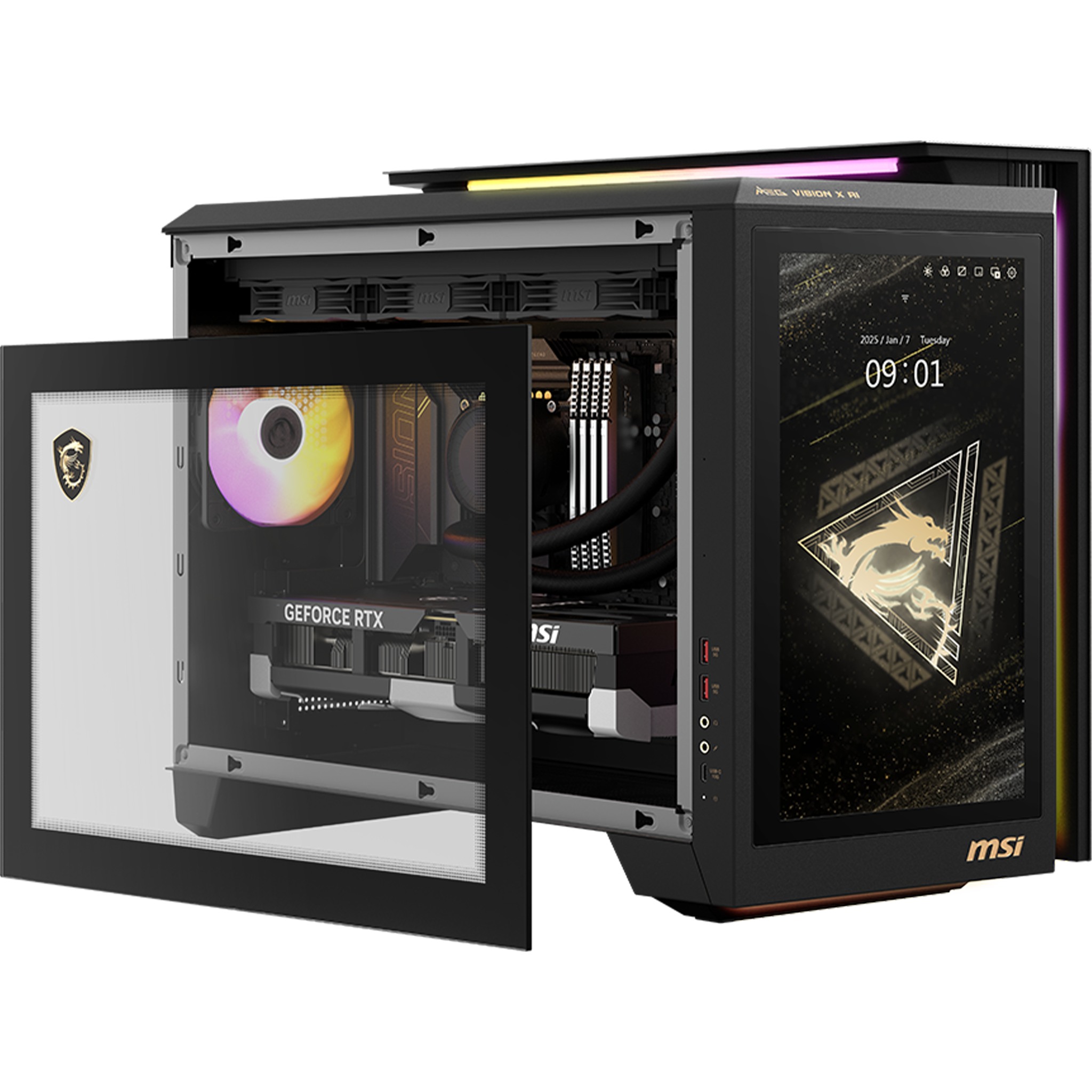 The MEG VISION X AI integrates MSI’s latest AI technology into its front touchscreen, the AI HMI, and is equipped with the latest CPU and a powerful graphics card. Enhanced by Silent Storm Cooling AI technology, it unleashes unprecedented gaming performance through a unique AI gaming experience. Join fellow gamers in exploring the limitless possibilities of AI!