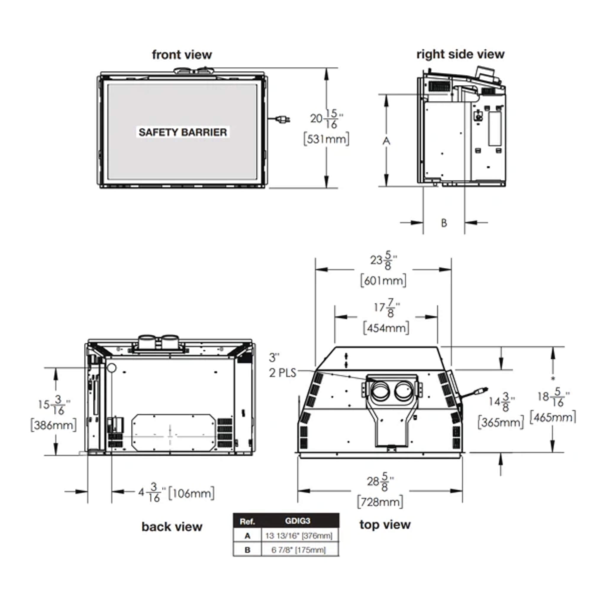 • Mirro-Flame Porcelain Reflective Radiant Panels bounce the flame’s glow back, creating a rich depth and enhancing the overall fire display. This feature adds a layer of visual interest and warmth to the room.