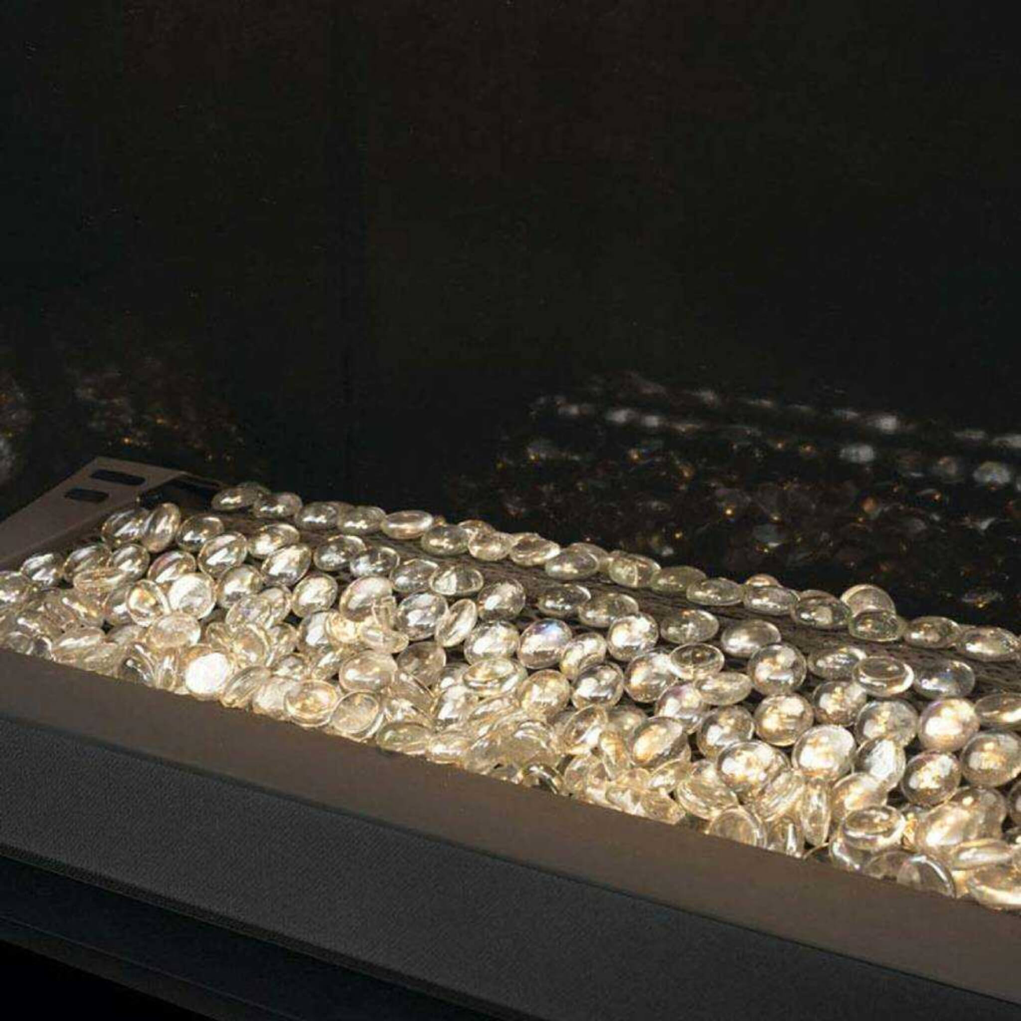• The sparkling Topaz Crystaline Ember bed adds a touch of elegance and sophistication to your living area. It creates a beautiful, glowing effect that enhances the ambiance.