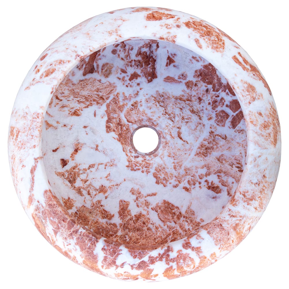 VilloHome Natural Stone Tiger Red-White Marble Vessel Sink Polished D: 16″ H: 6″ brings the beauty of nature to your home and creates a modern/contemporary design.