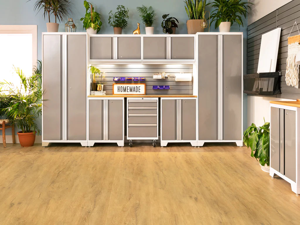 NewAge Products features a wide variety of custom designed garage organization solutions based on the Slat Wall system. NewAge Garage Products range from flooring, wall paneling and accessories and overhead storage to unique, custom designed garage storage cabinets and organization workstation kits. The wide variety offered by NewAge allows our customers to purchase a complete line of products from one manufacturer without having to mix and match.