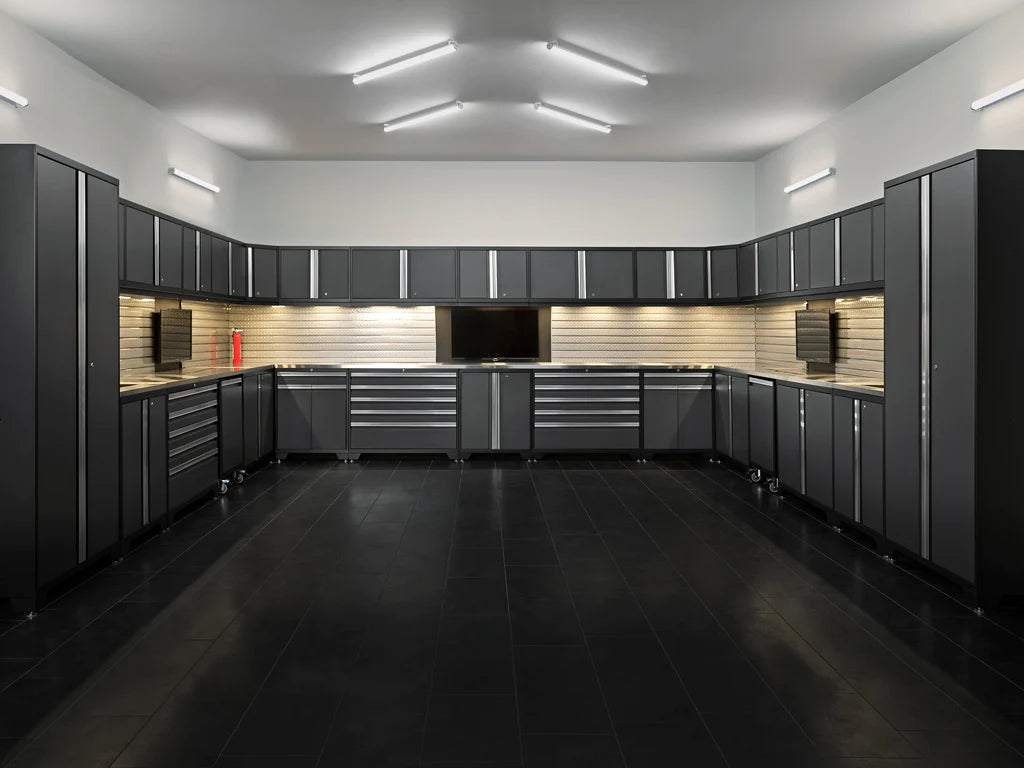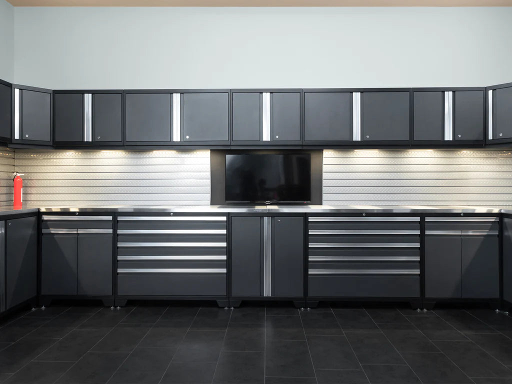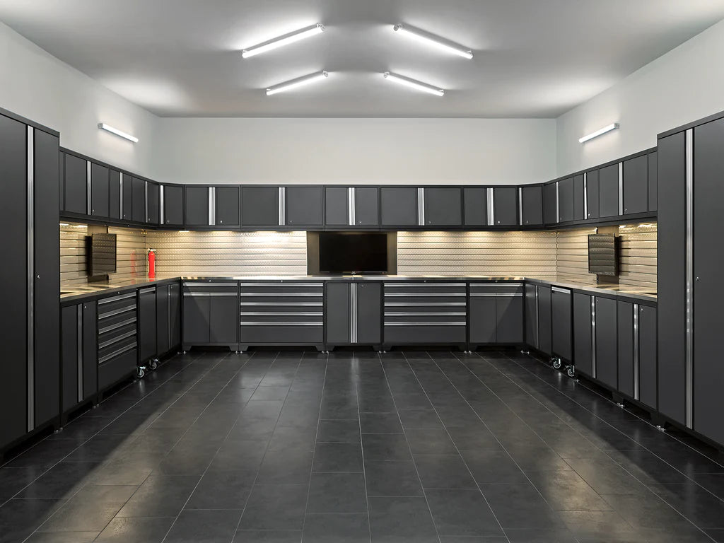 NewAge Products features a wide variety of custom designed garage organization solutions based on the Slat Wall system. NewAge Garage Products range from flooring, wall paneling and accessories and overhead storage to unique, custom designed garage storage cabinets and organization workstation kits. The wide variety offered by NewAge allows our customers to purchase a complete line of products from one manufacturer without having to mix and match.