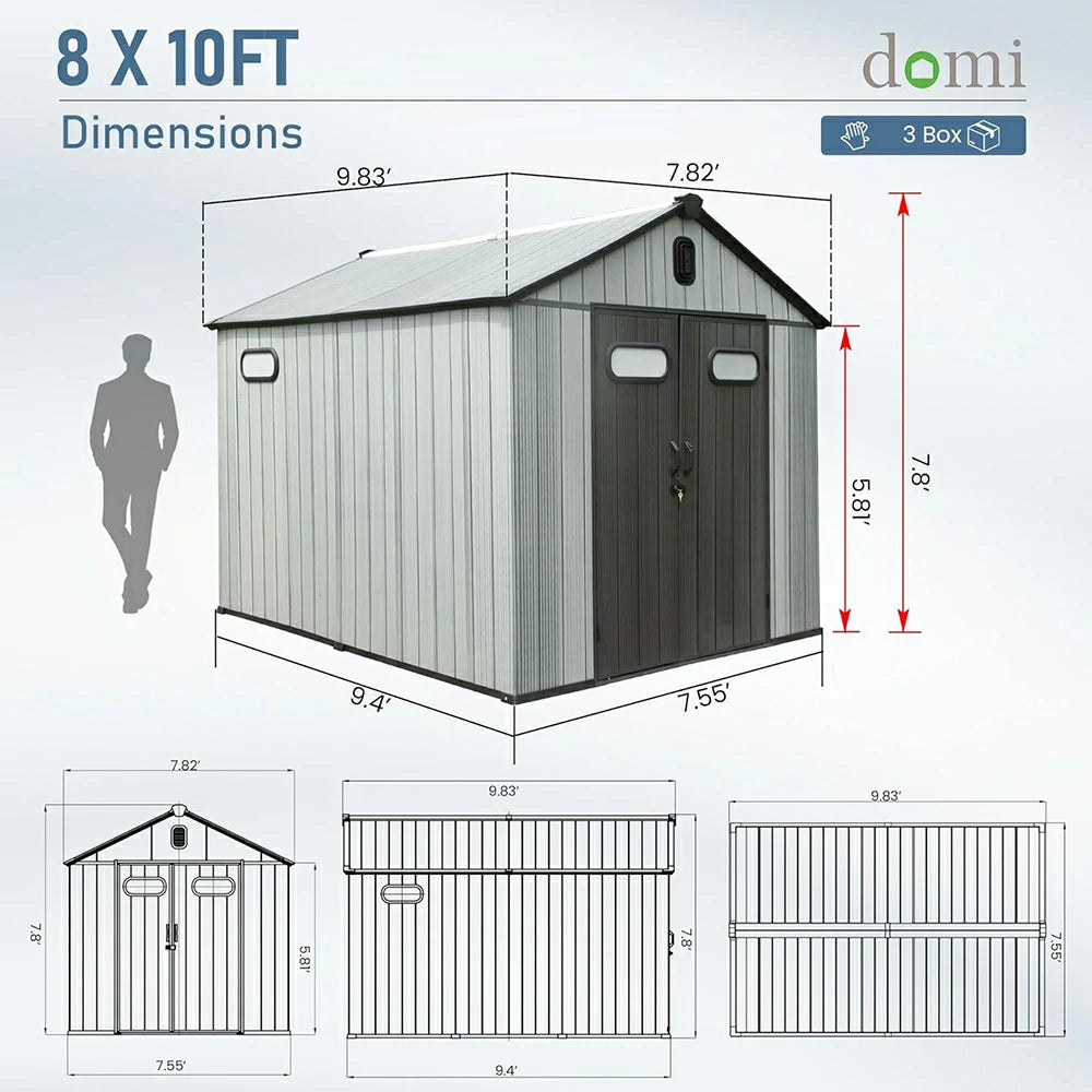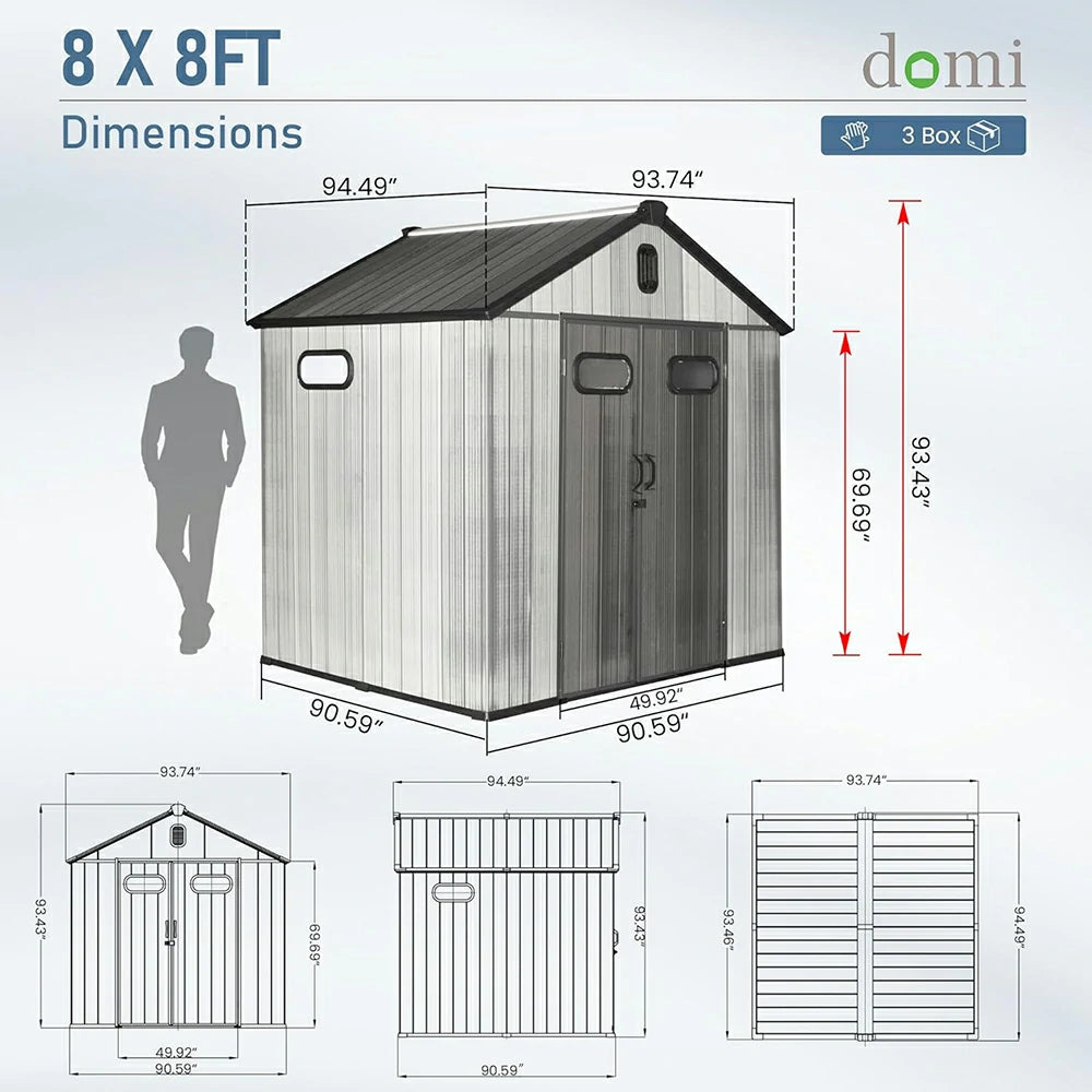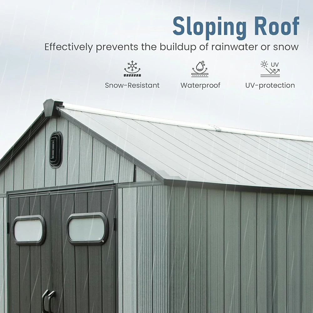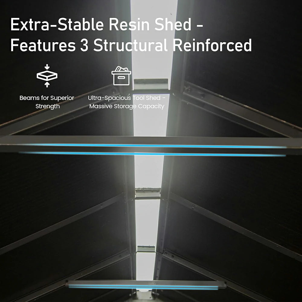 Durable Double-Wall Resin Construction: Built with reinforced resin panels and interlocking wall connectors for enhanced durability, this shed resists warping, denting, and weather damage—ideal for year-round use.