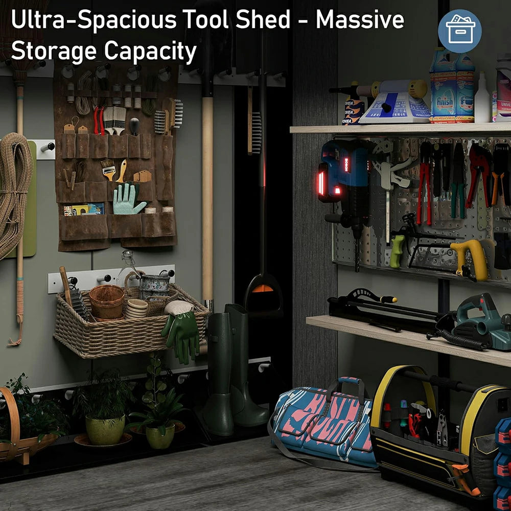 Spacious Outdoor Storage Solution: Designed to hold everything from lawn mowers and garden tools to bikes, pool supplies, and trash bins—ideal for organizing your outdoor essentials in one secure place.