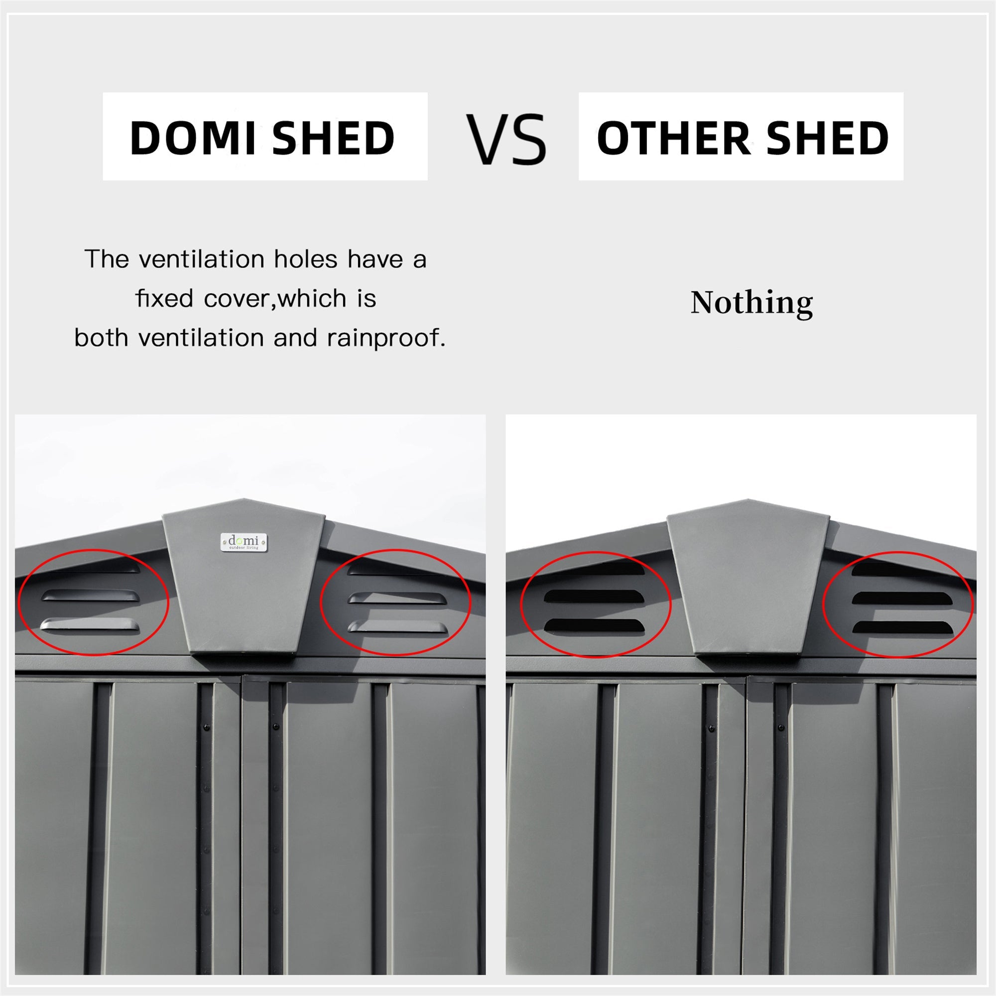 - Ventilation and waterproof design: The tool shed is designed with 10 air vents in the front and back, a total of 20 air vents, to keep the internal air circulation and dryness.