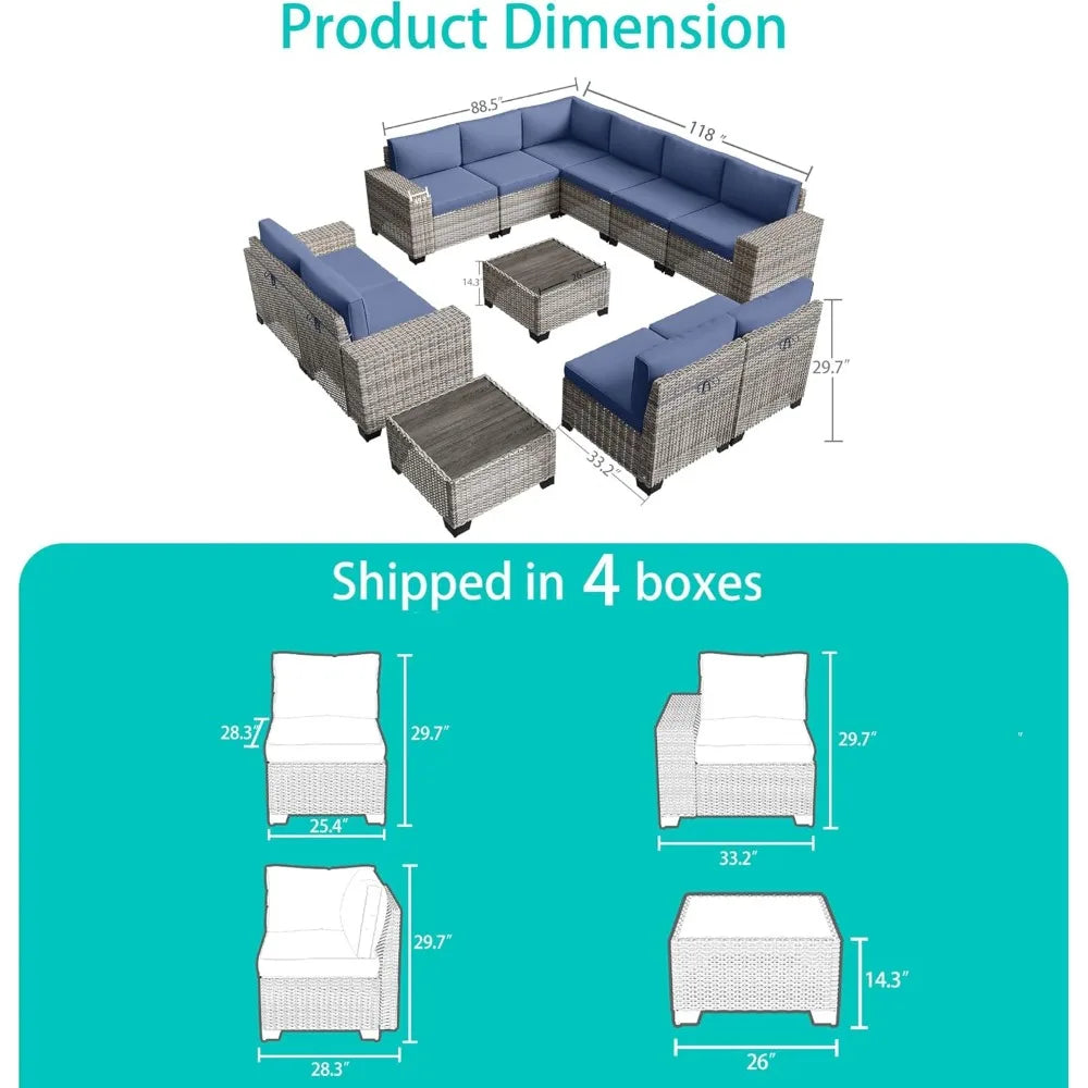 Package Includes: 1x Sofa (11), 1x Coffee Table, Cushions, Tools, and Instructions.