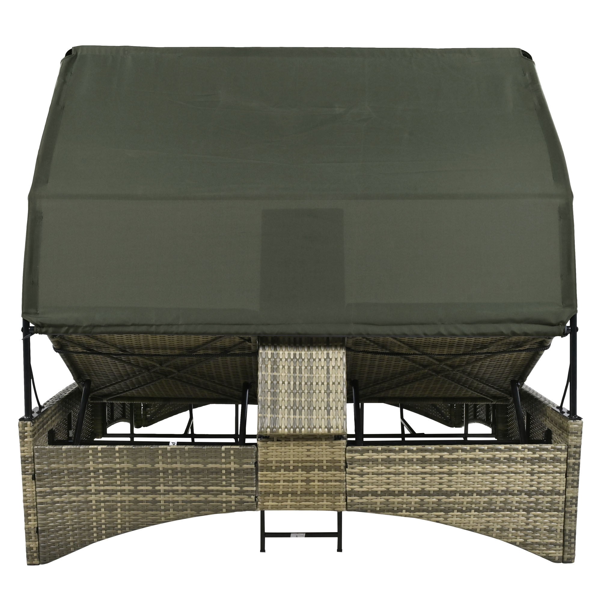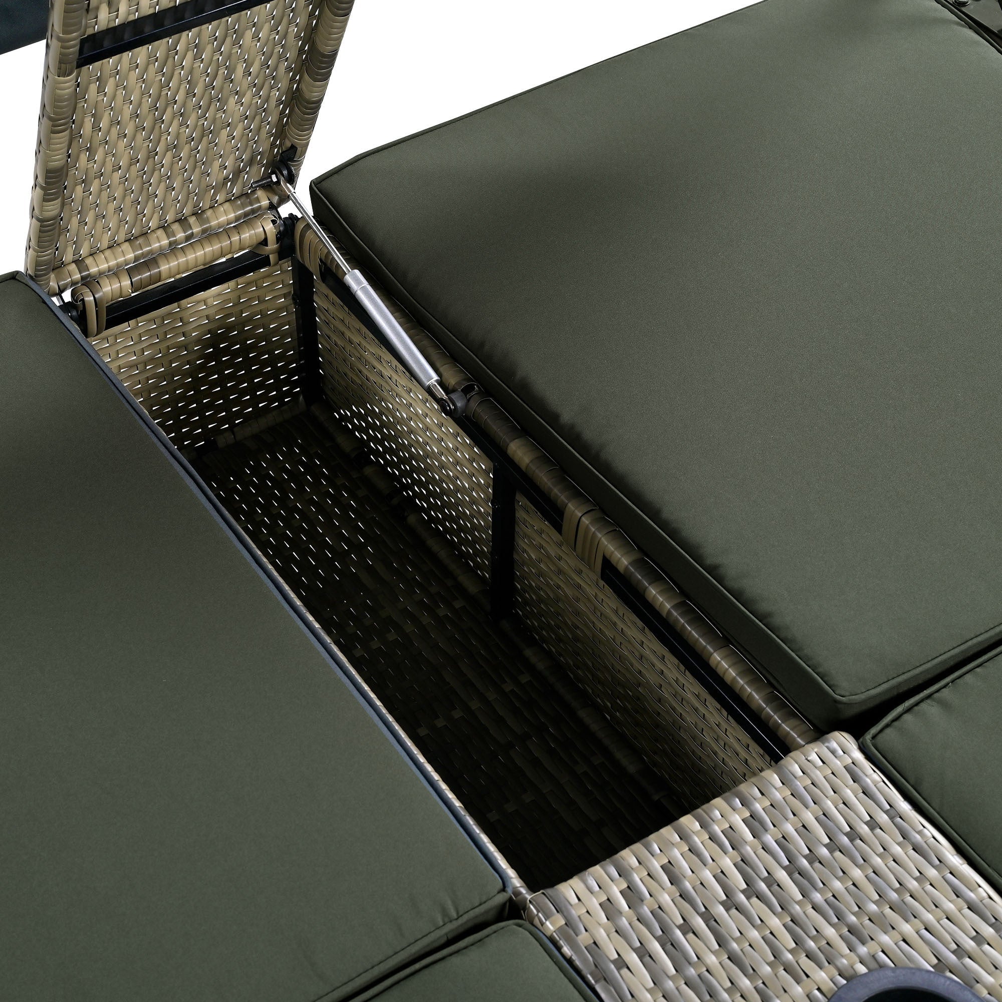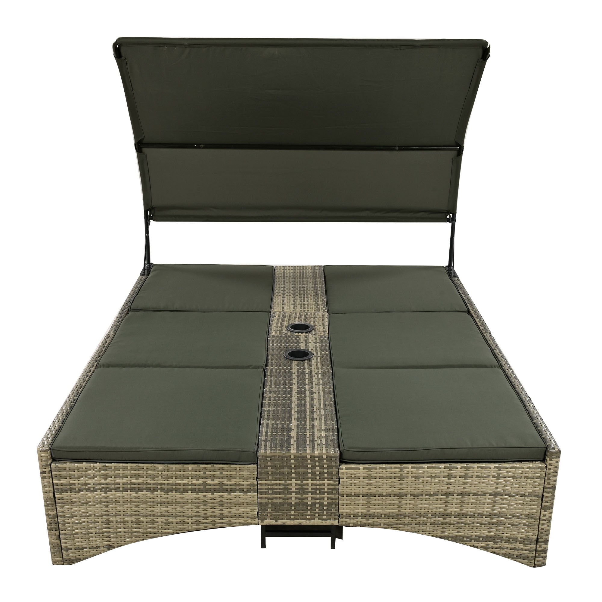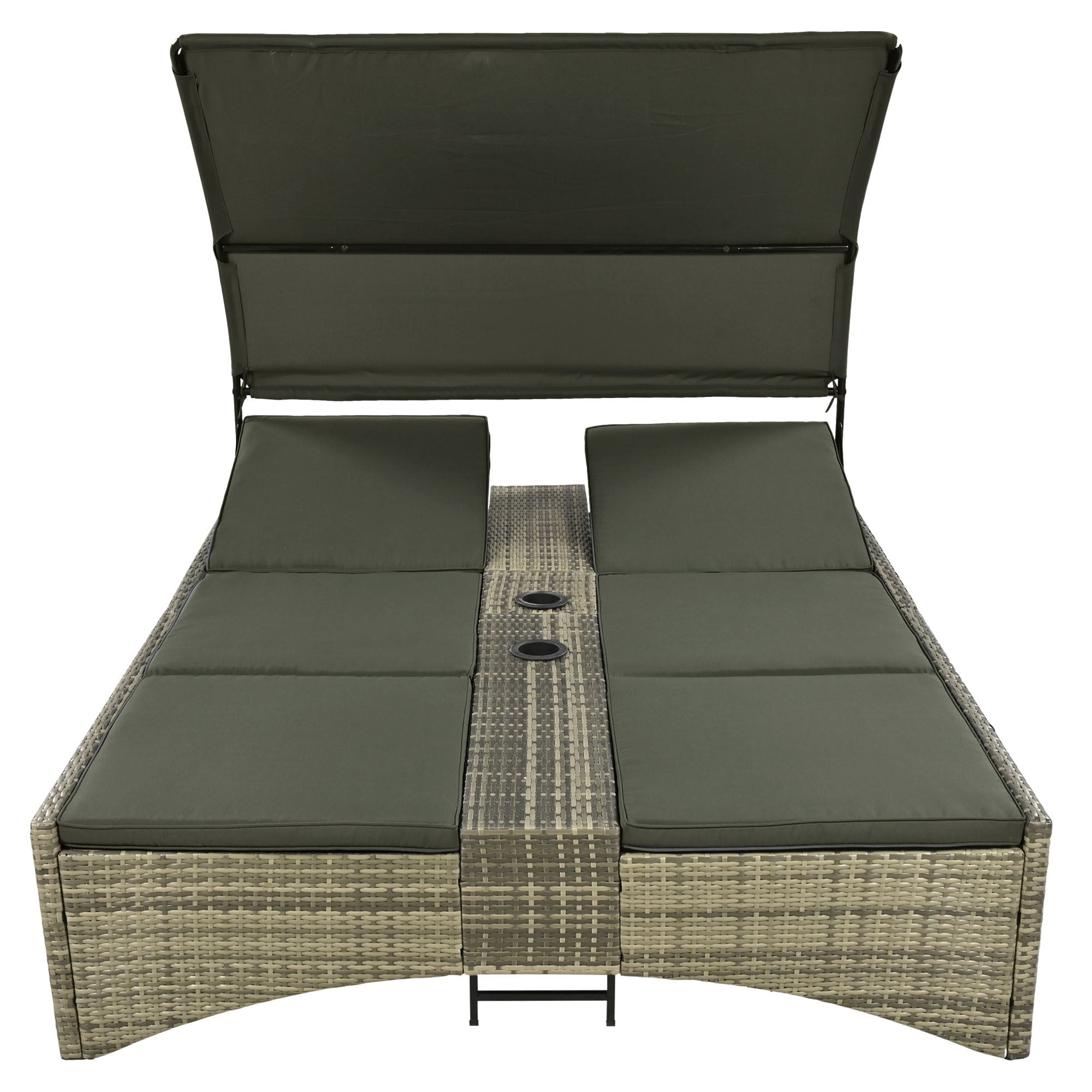 Patio Daybed Outdoor Daybed Outdoor Rattan Sun Lounger with Shelter Roof with Adjustable Backrest, Storage Box and 2 Cup Holders for Patio, Balcony, Poolside,Grey