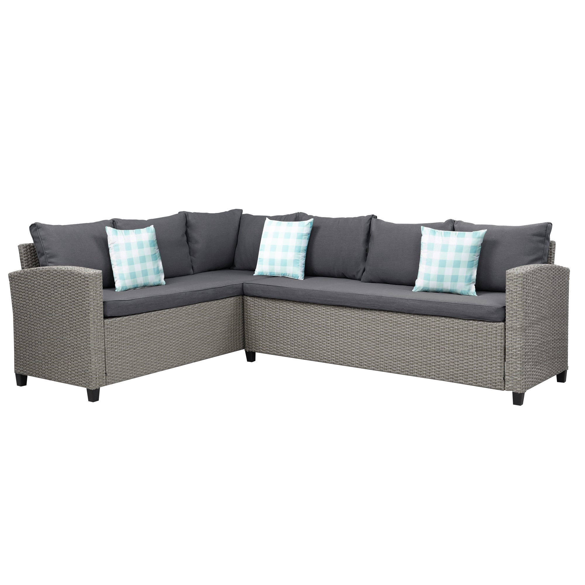 The sectional seating group is meticulously designed to let you enjoy life outdoors. The rattan-made set is the best choice for your patio, porch, poolside or garden. Complete with soft bottom and rear cushion seating, a lounge for hours on end in comfort. Crafted from weatherproof resin wicker, the steel frame makes this product more durable. Enjoy beautiful summer days with this sectional patio set.