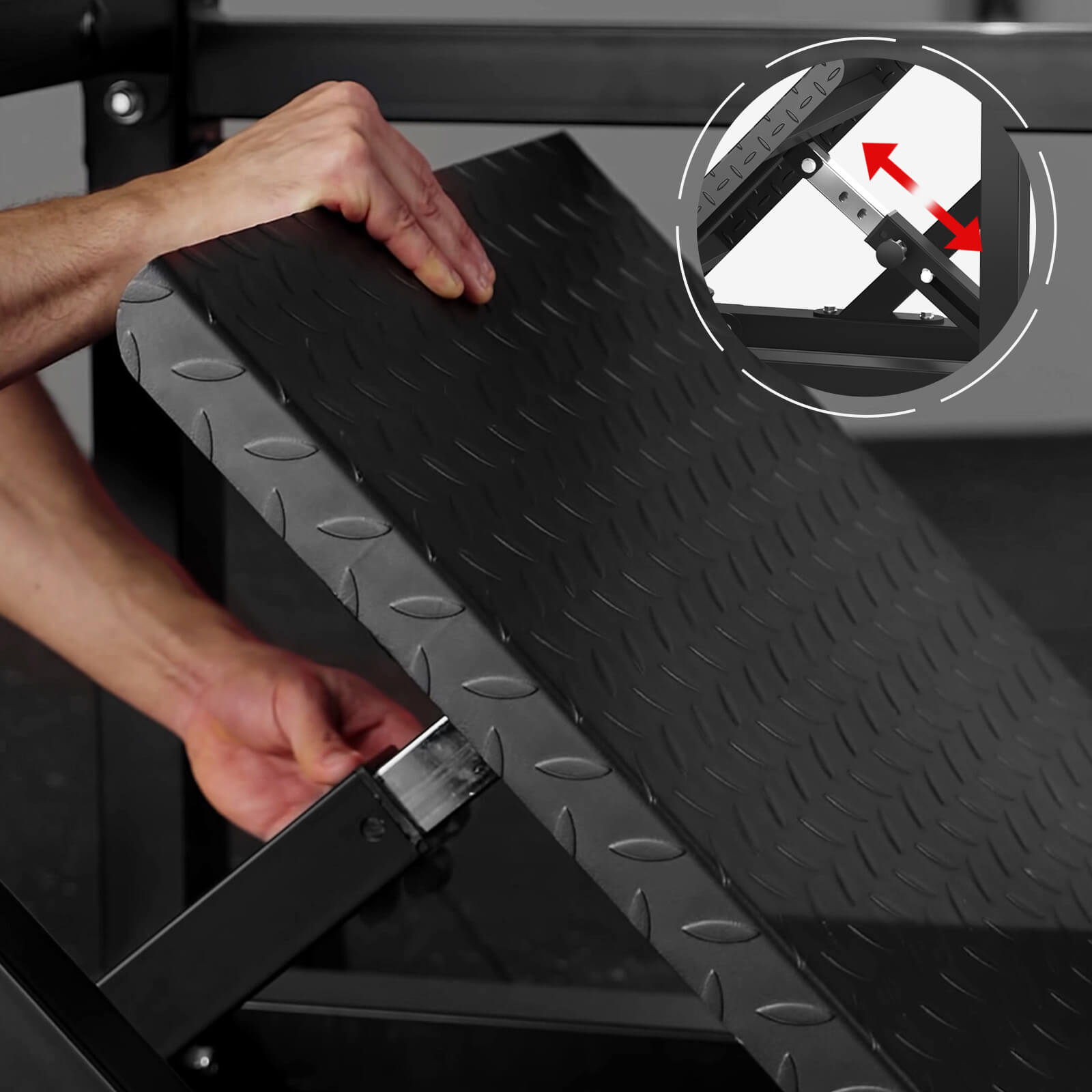- Adjustable Resistance with Removable Springs – We add the removable spring design to this machine. The spring counterbalance system can provide resistance throughout the range of motion. This means that the resistance can be adjusted based on the user’s strength and the specific phase of the exercise, allowing for a more tailored workout experience. You can choose to remove or install the springs as you see fit.