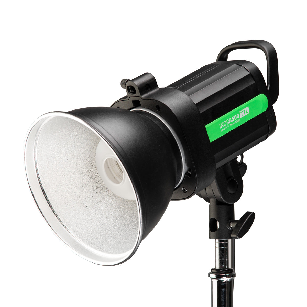 Intended for photographers on the road, the Indra500 TTL Battery Powered Studio Light from offers a design driven by portability, flexibility and power. Both power cord-free and sync cord-free, the Indra500 is also hassle-free thanks to the Odin receivers for Nikon and Canon cameras built into every unit. Phottix starts with a flash head with all the qualities of a studio flash such as 500Ws of power, adjustable from 1/128 to full power over an 8-stop range. Recycling time is 0. 1 to 2 seconds with the included Li-ion polymer battery and 0. 1 second with the optional AC adapter. Action-stopping flash durations as short as 1/15,000 (t. 1) sec. are possible at reduced power settings for freezing splashes or peak-moment sports shots.