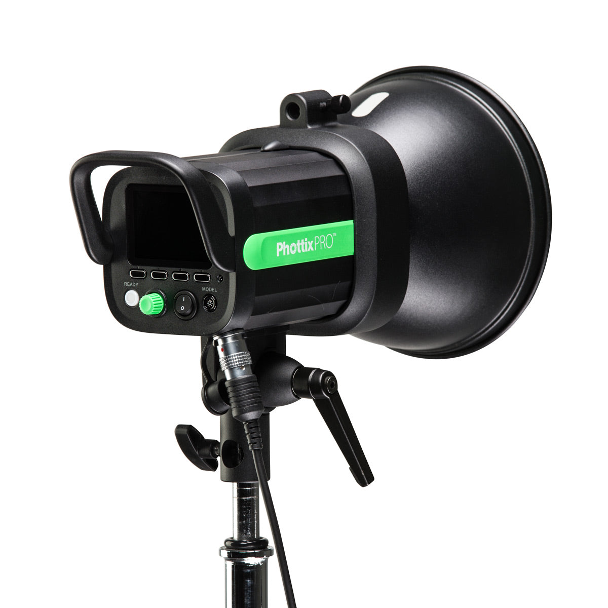 The Indra500 TTL ships with a Li-ion polymer battery, charger and reflector. A 110-220 VAC adapter is available for separate purchase.