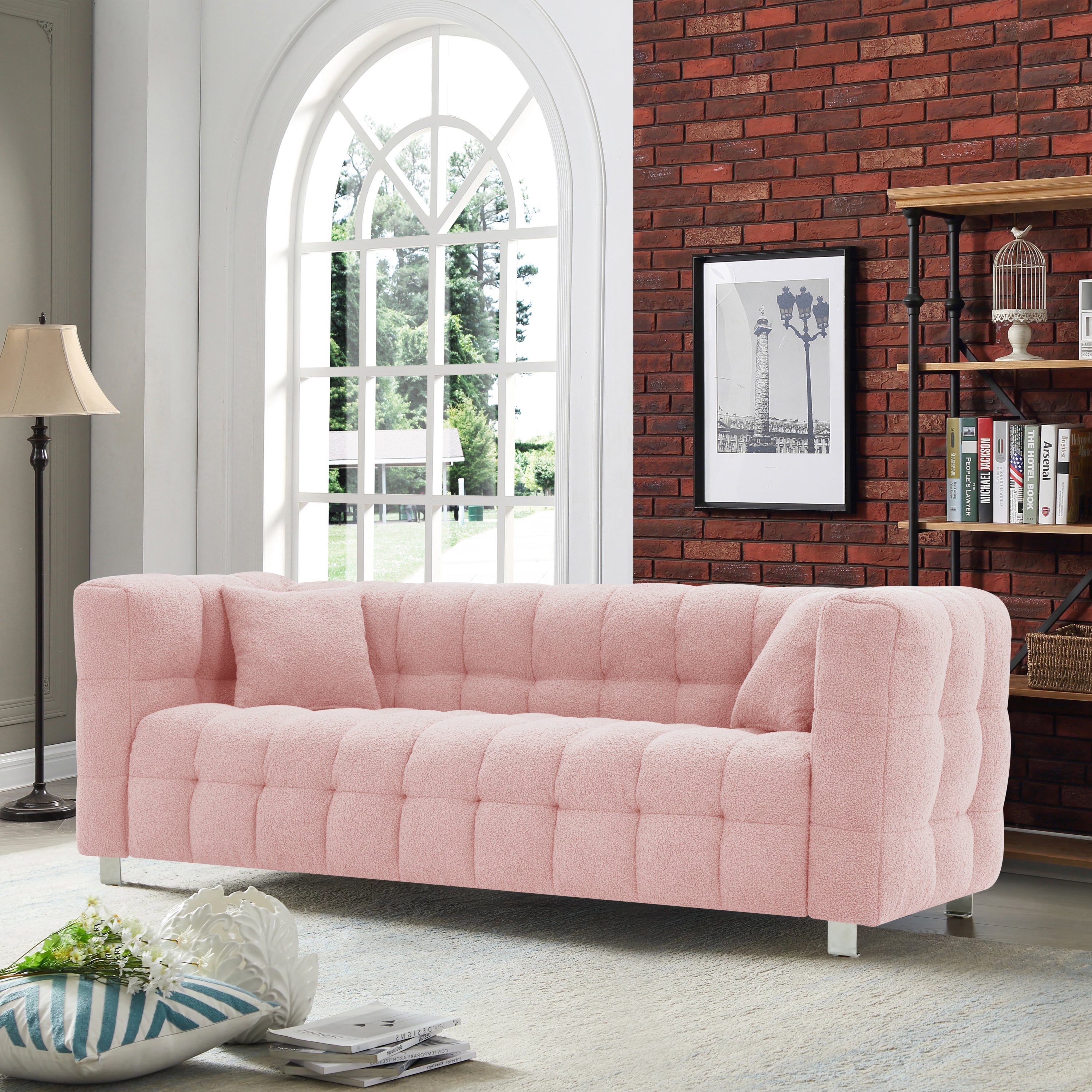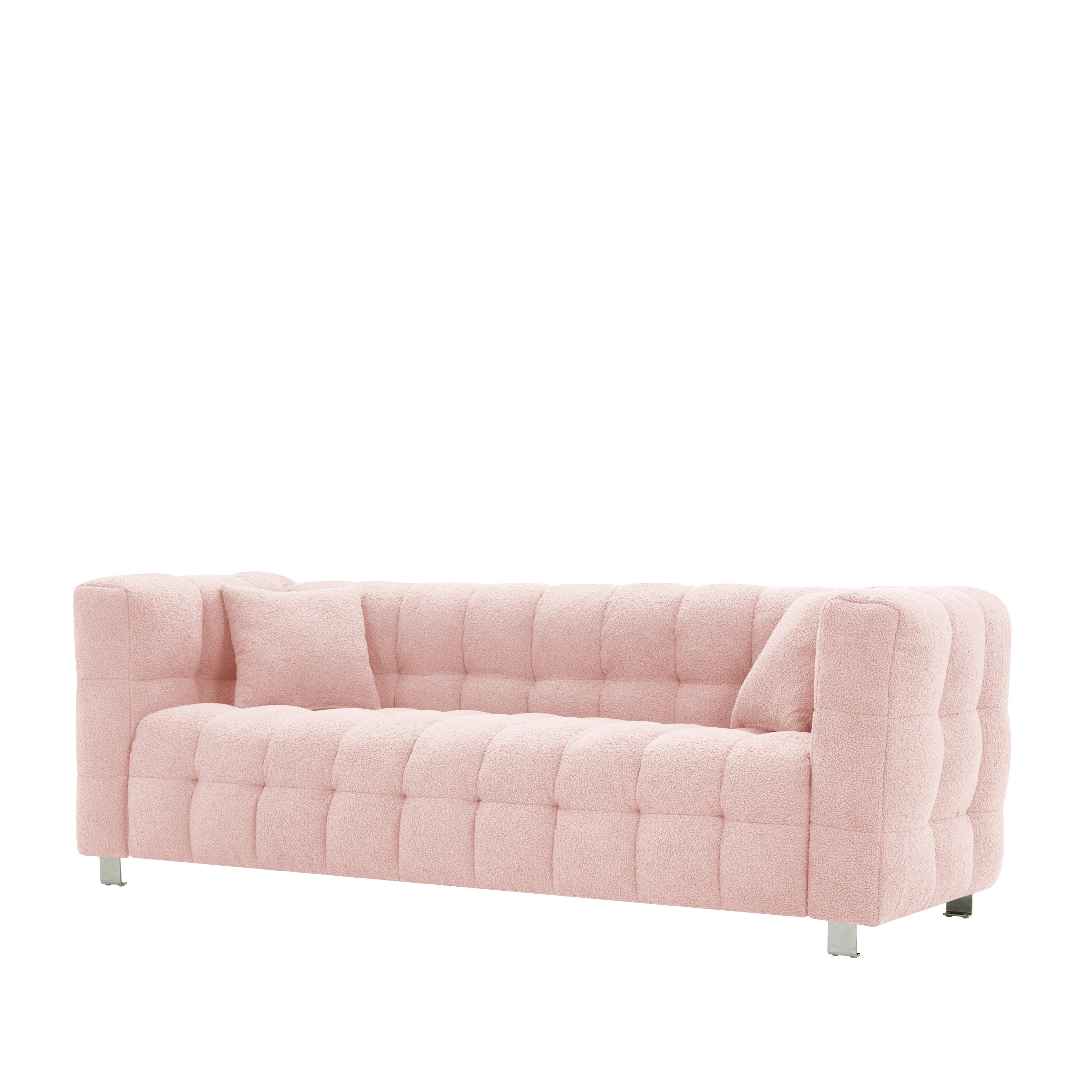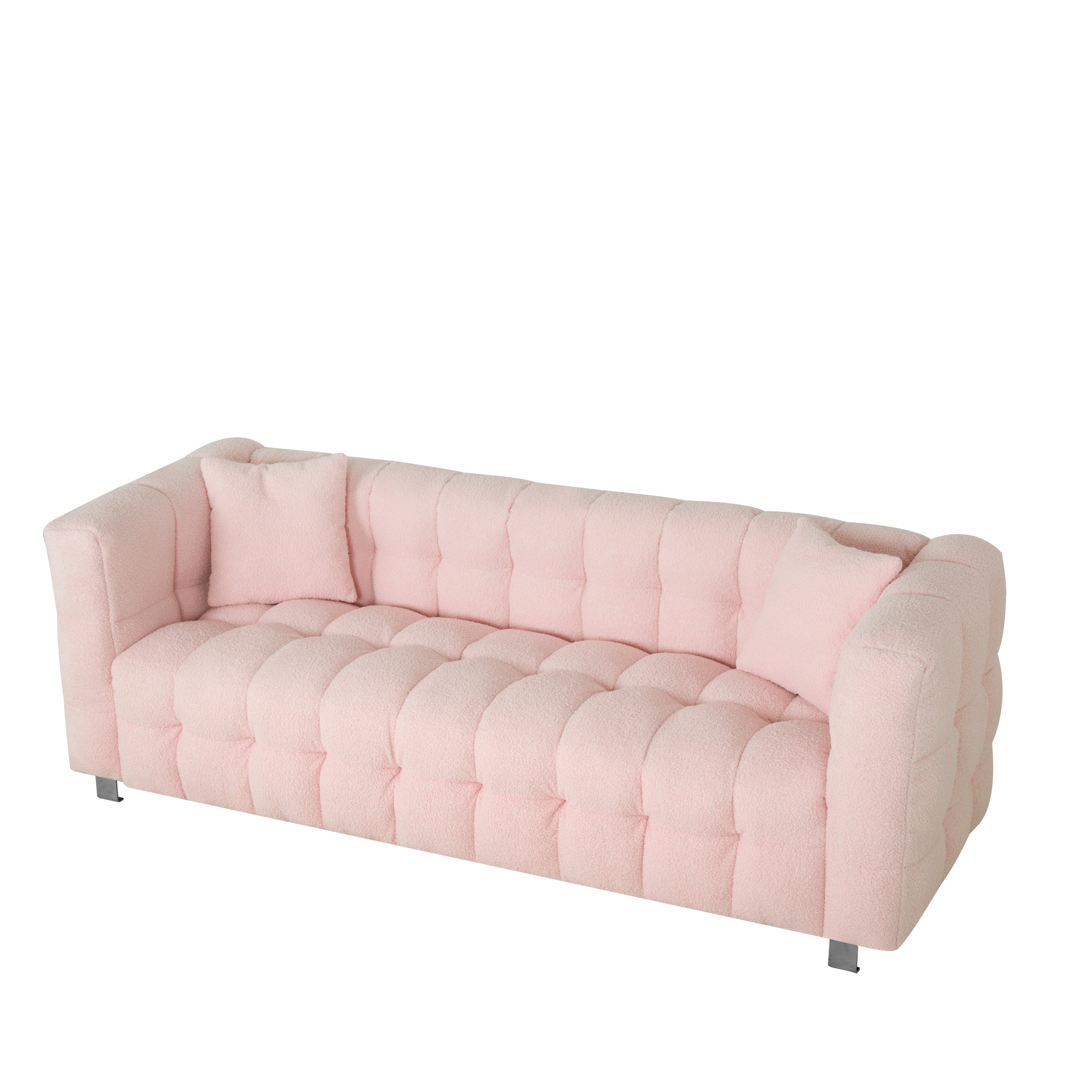 Pink teddy fleecesofa 80 inch discharge in living room bedroom with two throw pillows hardware foot support