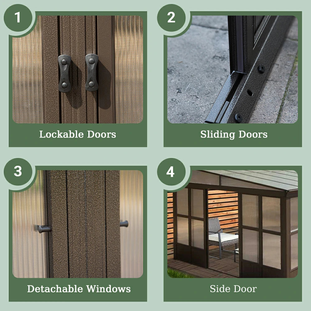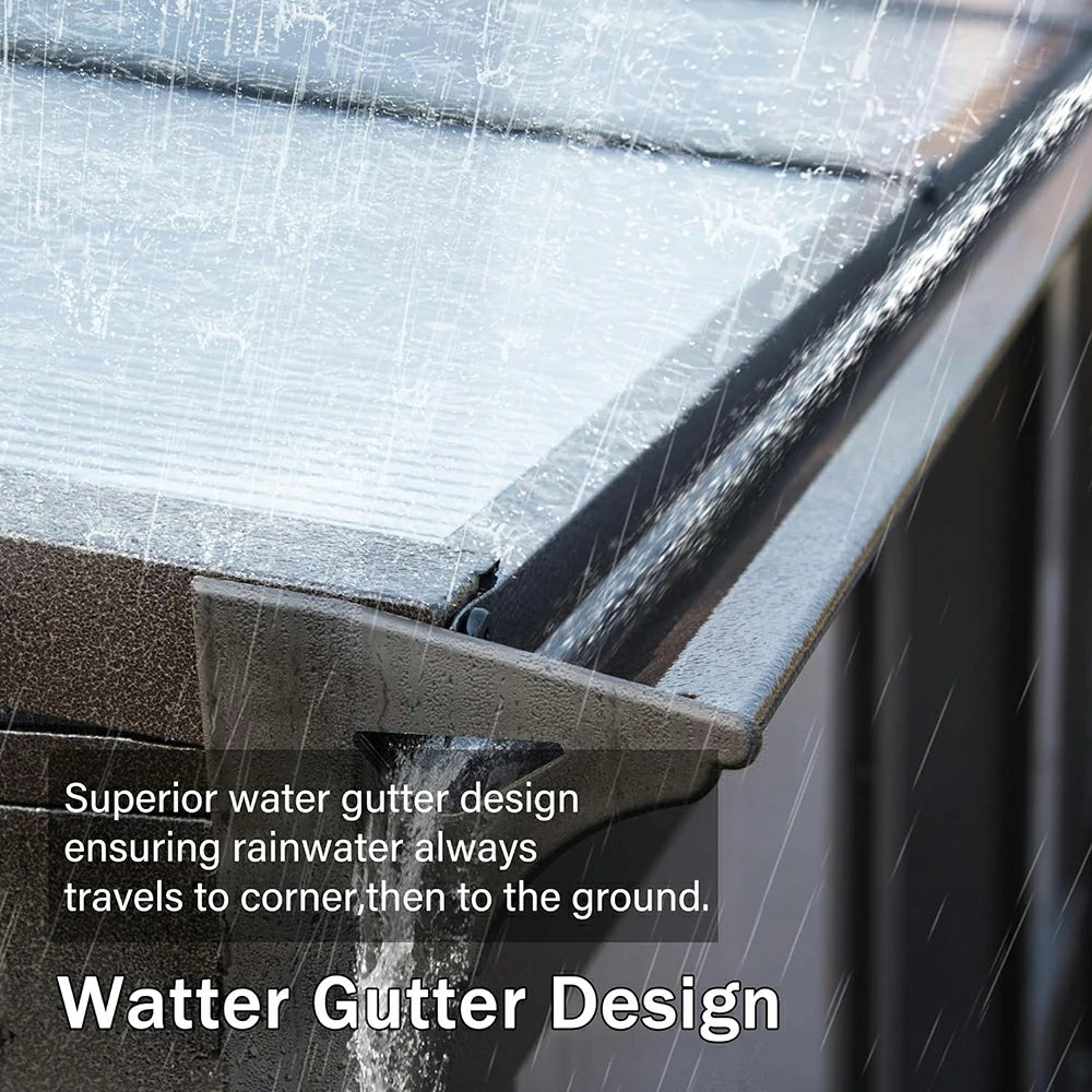 Equipped with a state-of-the-art drainage gutter system, our sunroom effectively manages rainwater, preventing water buildup and ensuring a dry and comfortable environment. The included storage organizers help keep your outdoor space clean and orderly, providing convenient storage solutions.