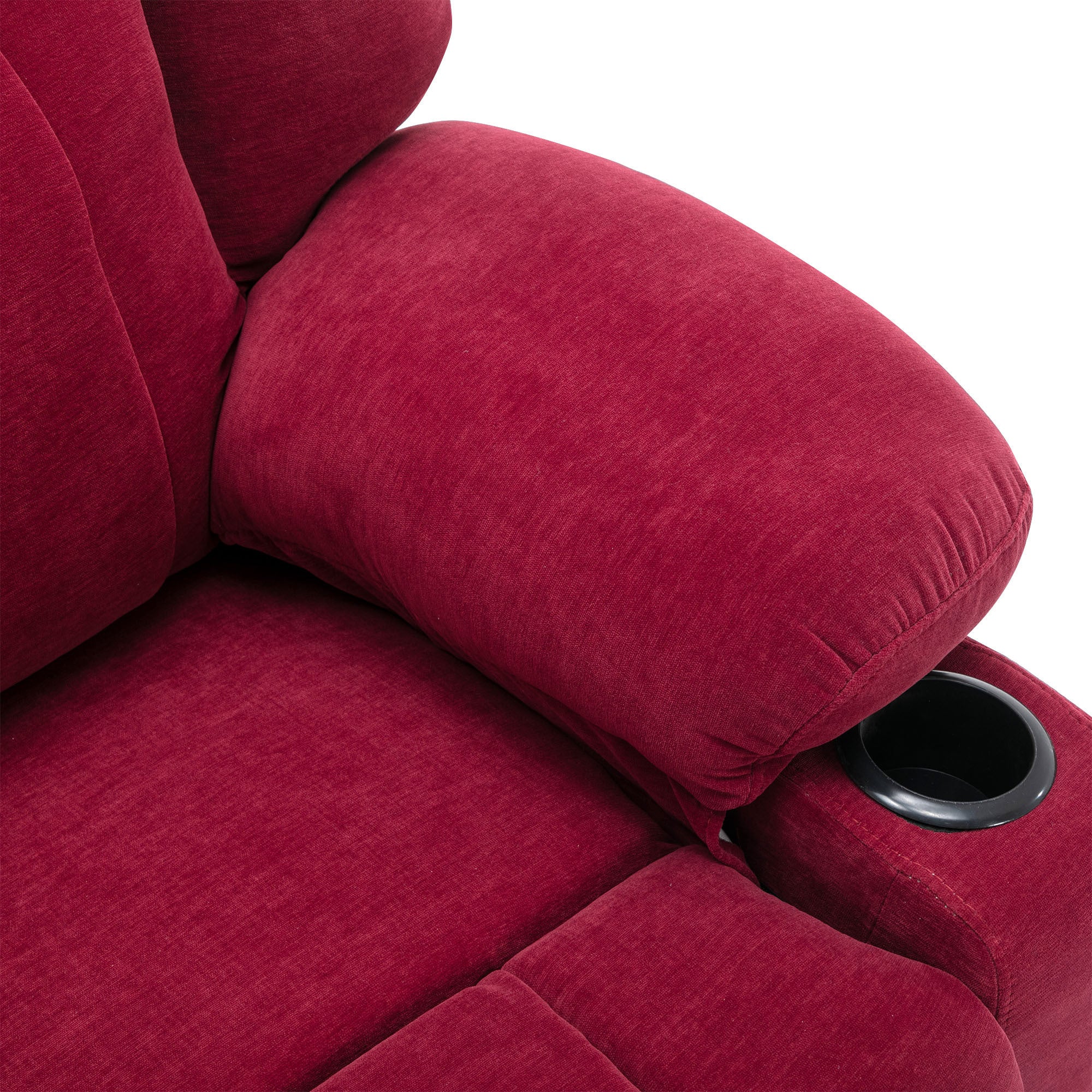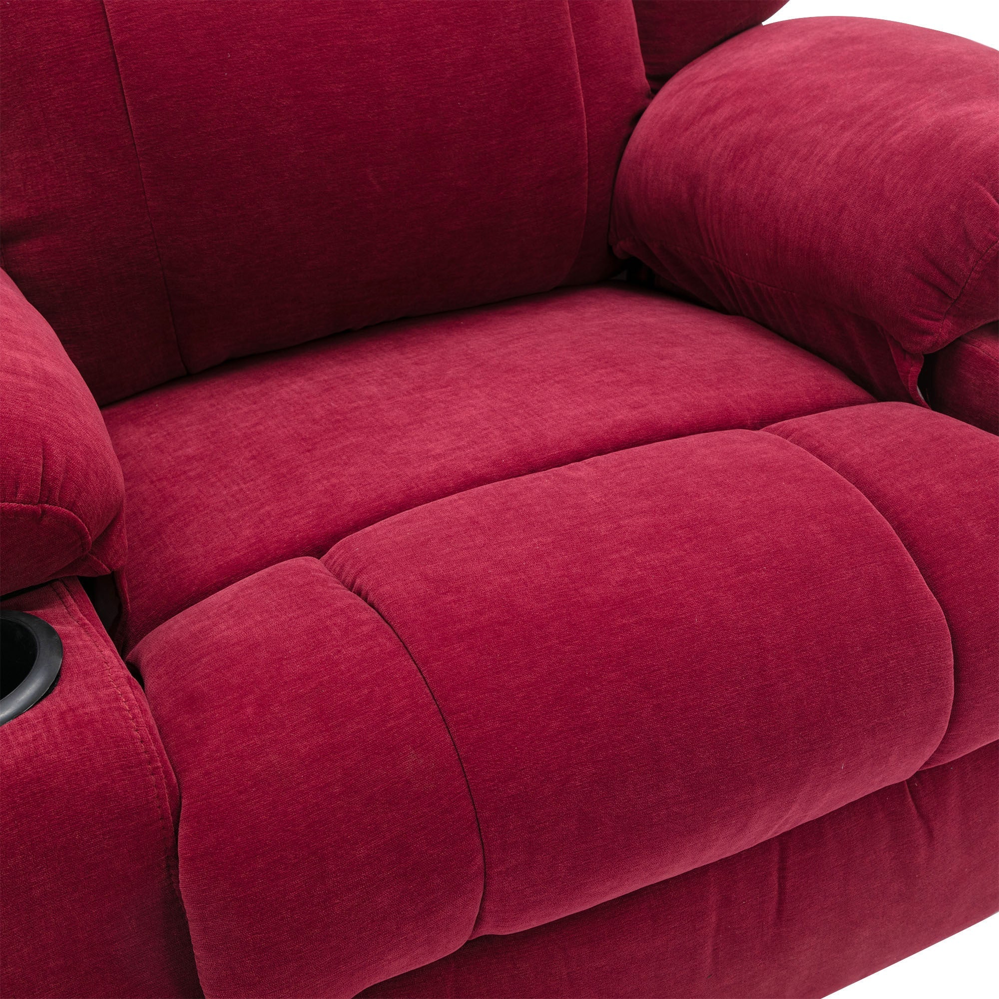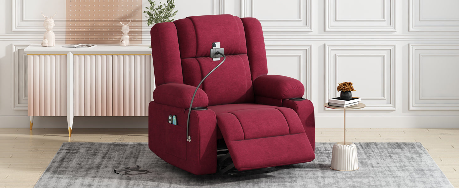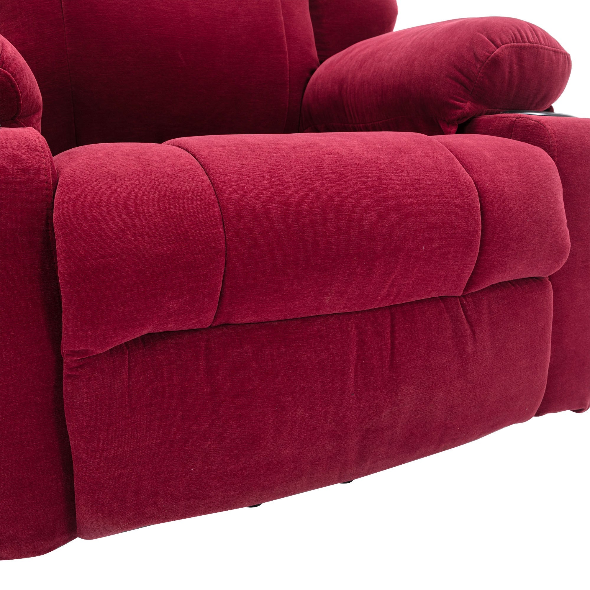 - Side Storage Pockets and Two Cup Holders -This recliner has dual side pockets provides a place for placing the remote control and other small objects, two cup holders on both sides of armrests best meets your needs to put tea, juice. Two cup holders and side pockets for drinks or other small items within reach are good design for your daily using.
