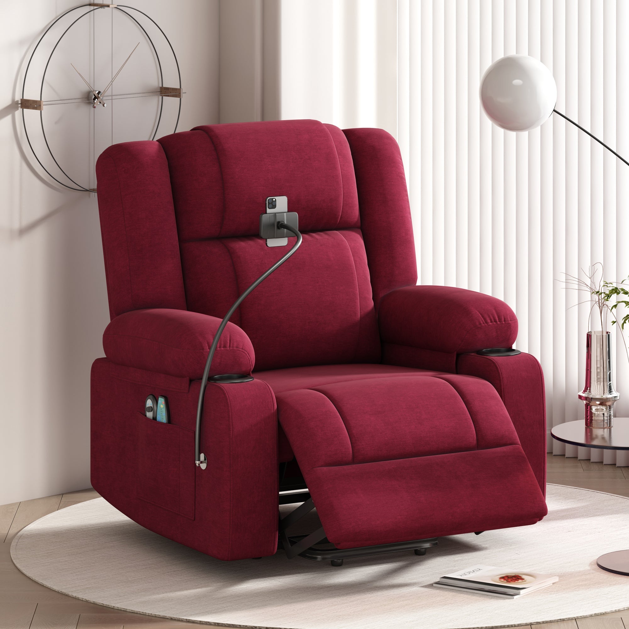 - 360°Swivel Phone Holder – This power lift recliner is equipped with a 360°phone holder. When you lie on the recliner, you can put your phone on the phone holder, it can free your hands and make you more comfortable and relax.