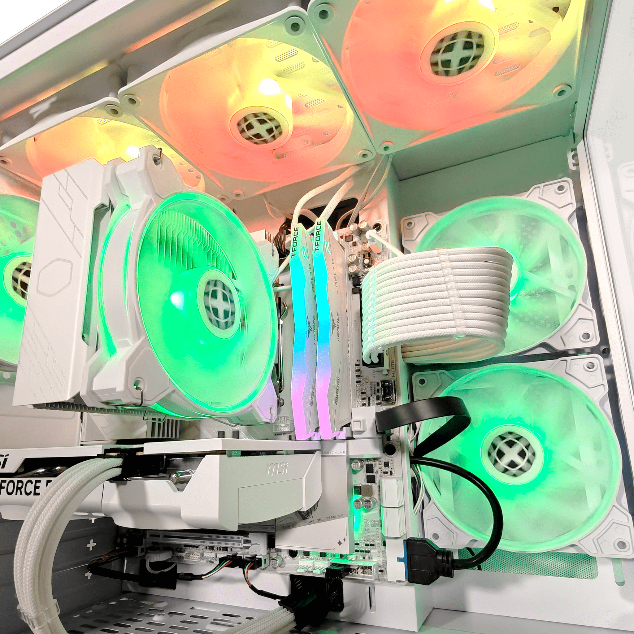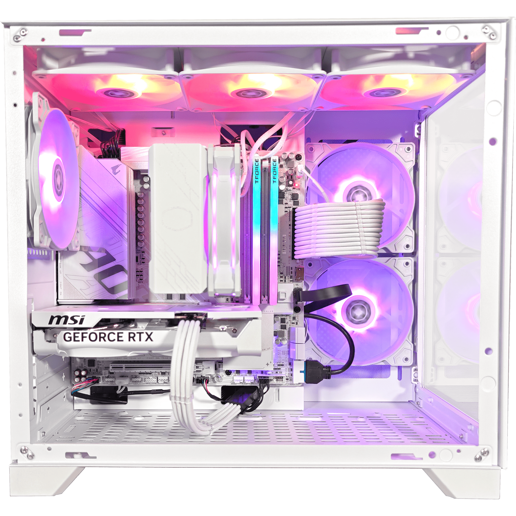 The Prism Premier is a compact powerhouse designed to turn heads and elevate your entire setup. Wrapped in sleek black tempered glass with vibrant pre-installed ARGB fans, it delivers a bold, glowing visual experience straight out of the box—no extra setup required. At its core, it features an AMD Ryzen™ 7 9700X processor and NVIDIA® GeForce RTX™ 5060 graphics for smooth gaming and multitasking, backed by 32GB of DDR5 memory and a 1TB Gen 4 NVMe SSD for blazing speed and massive storage. The GIGABYTE B850M AORUS ELITE WIFI6E ICE motherboard brings built-in Wi-Fi, Bluetooth, and a full range of ports, while an MSI 750W GOLD power supply and 120mm RGB tower cooler ensure efficient, quiet performance. Compact yet capable, this micro‑ATX build is fully loaded with Windows 11 and built to be the standout centerpiece of any battlestation.