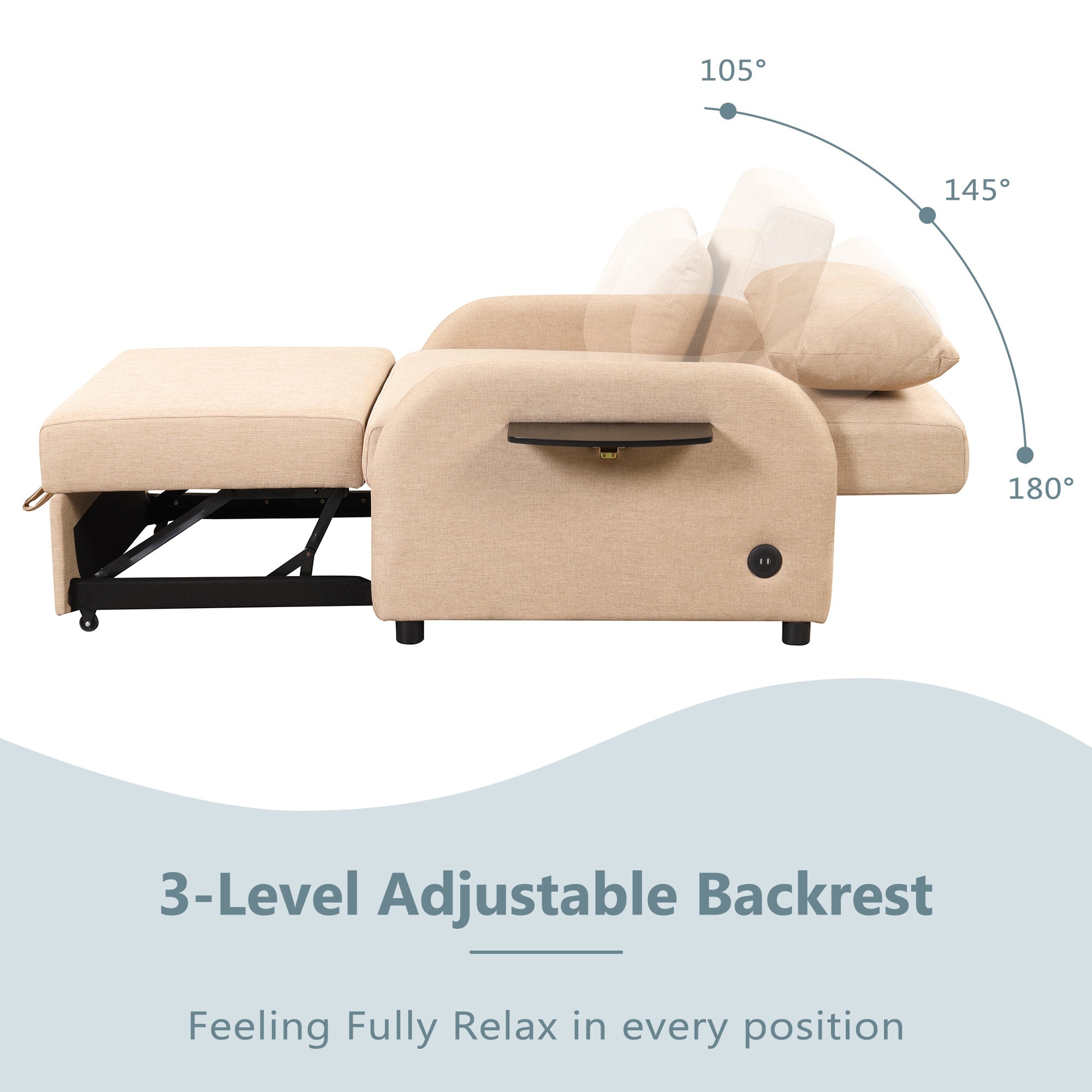 【Wing table and Usb charge】The collapsible table top is like a pair of small wings that can hold small handy items, such as a phone or a glass of water. Using every inch of space as wisely as possible. The usb charge can avoid the clutter of wires and make your room look more tidy.