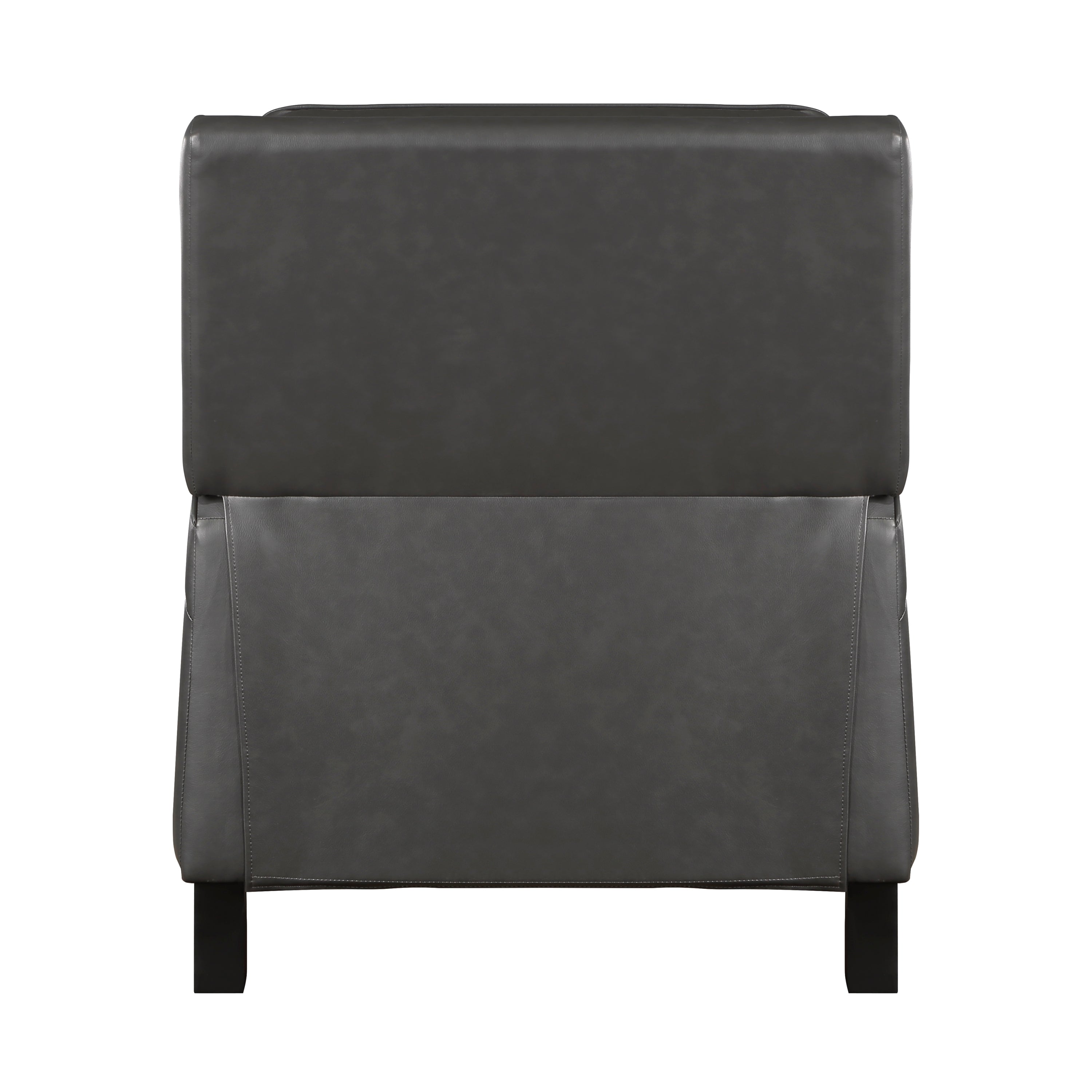 With a reclining mechanism that is engaged with your push, settling into the Berenson Collection is done so with ease. The tailored profile of the push back reclining chair is covered in gray faux leather and features nail head trim, lending to its transitional style, creating the perfect complement to your homes décor.