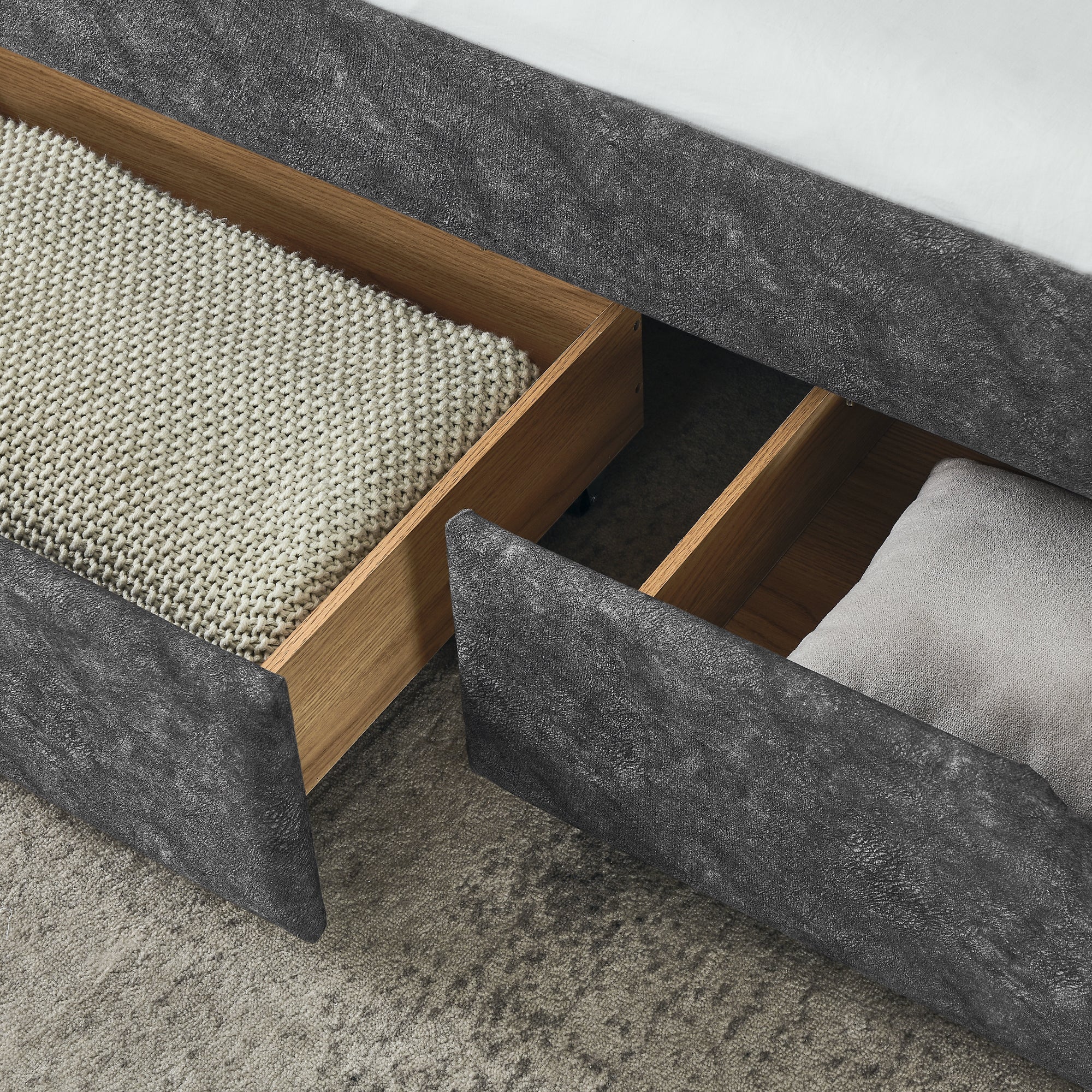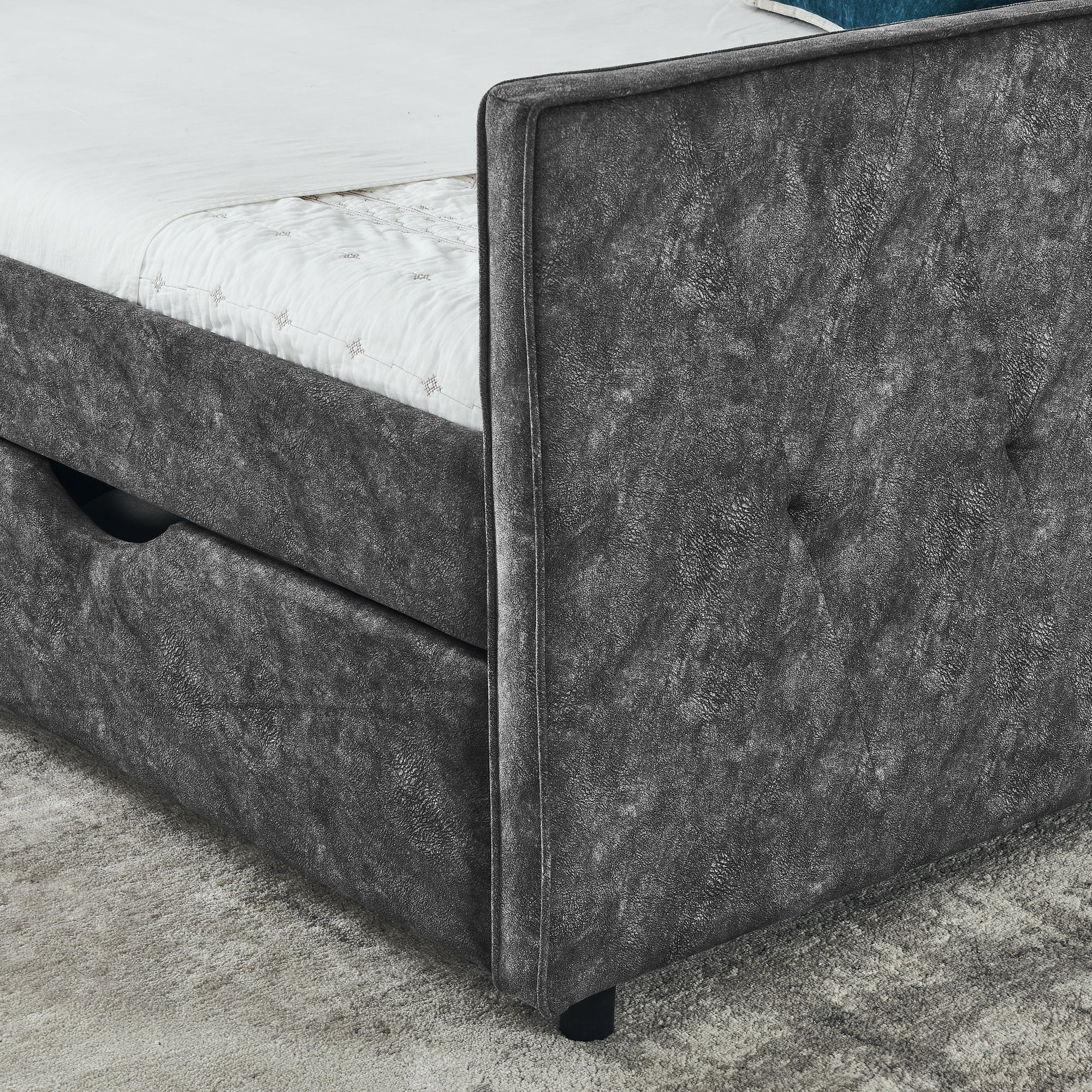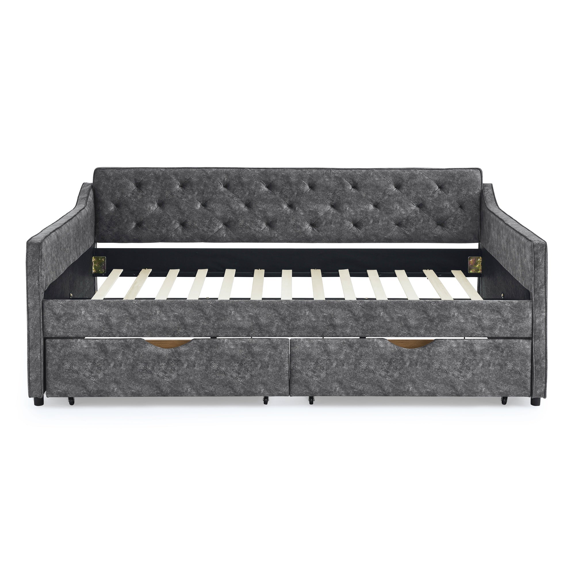 - [ Functional Trundle] This exceptional piece of living room furniture is manufactured to meet your needs, allowing the cozy bed to not only afford a comfortable seating experience but also two drawers under the bed provide storage function. Reinforced Frame. The frame of this daybed with drawers is crafted from a combination of eucalyptus wood and MDF board to effortlessly hold up to 500lbs.