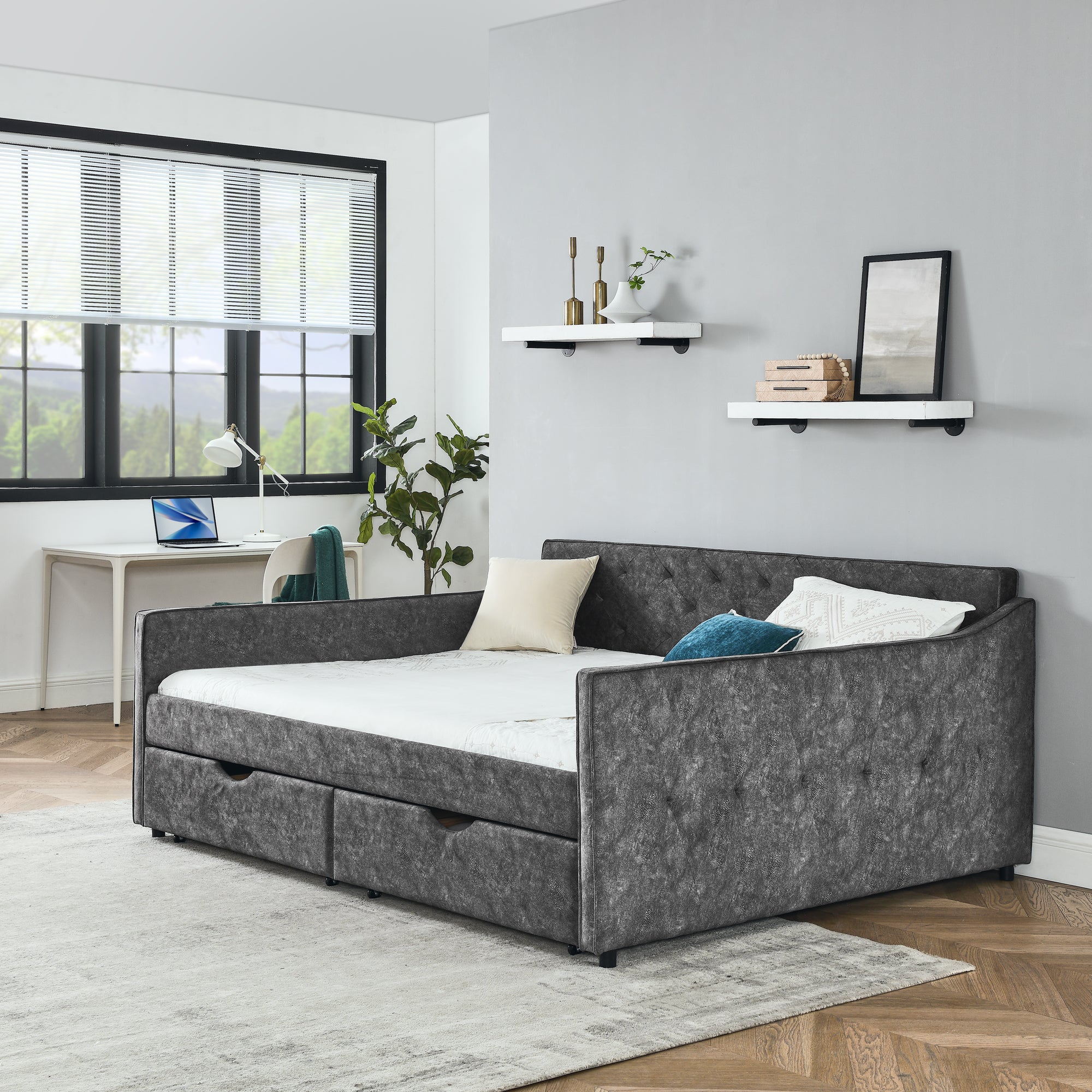 Be the first to review “Queen Size Daybed with Drawers Upholstered Tufted Sofa Bed,with Button on Back on Waved Shape Arms” Cancel reply