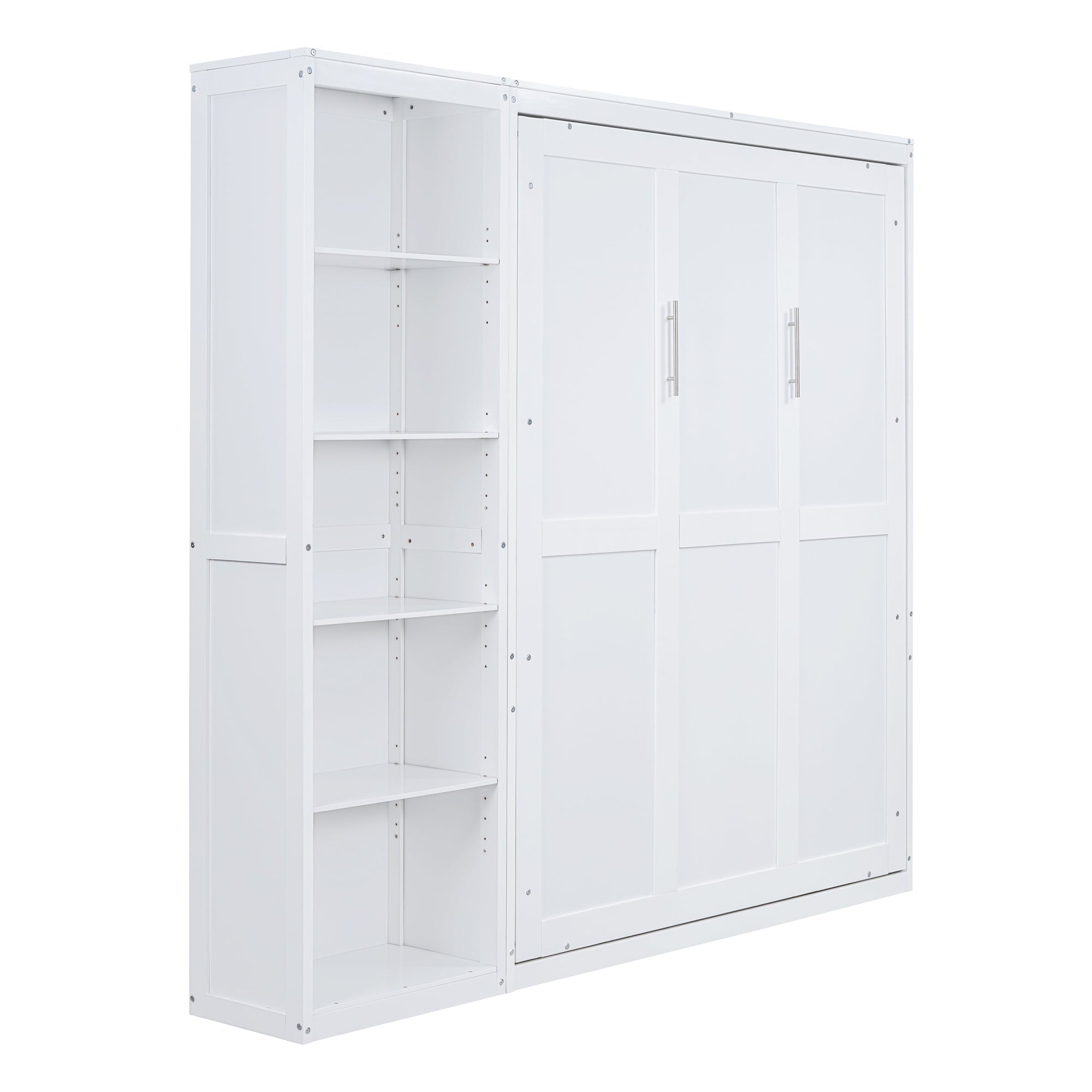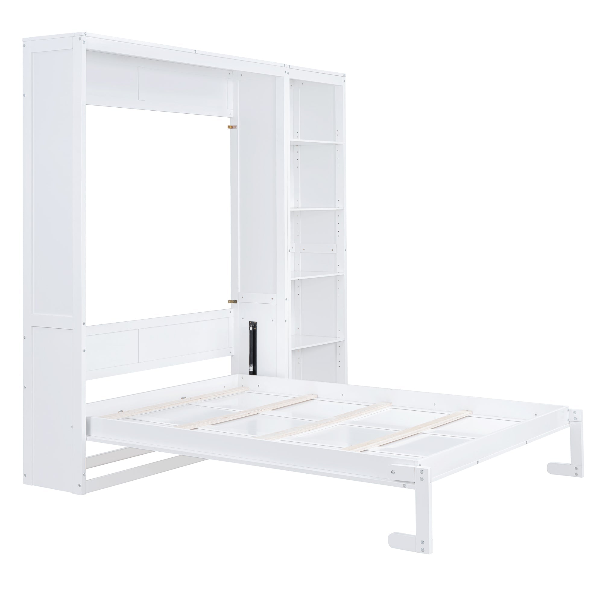 Queen Size Murphy Bed Wall Bed with Shelves,White