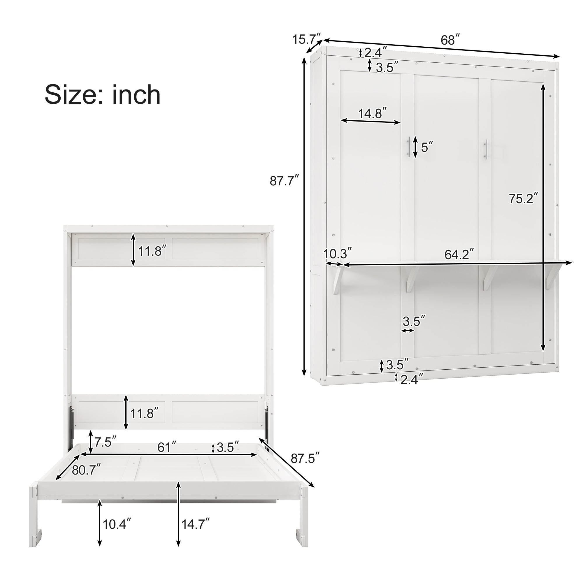 - No spring Box Required: The wall bed is equipped with supporting wooden board. You can put your mattress directly on it without spring box, which is convenient and fast. Mattress thickness can be 8-10 inches (no excluding mattress)