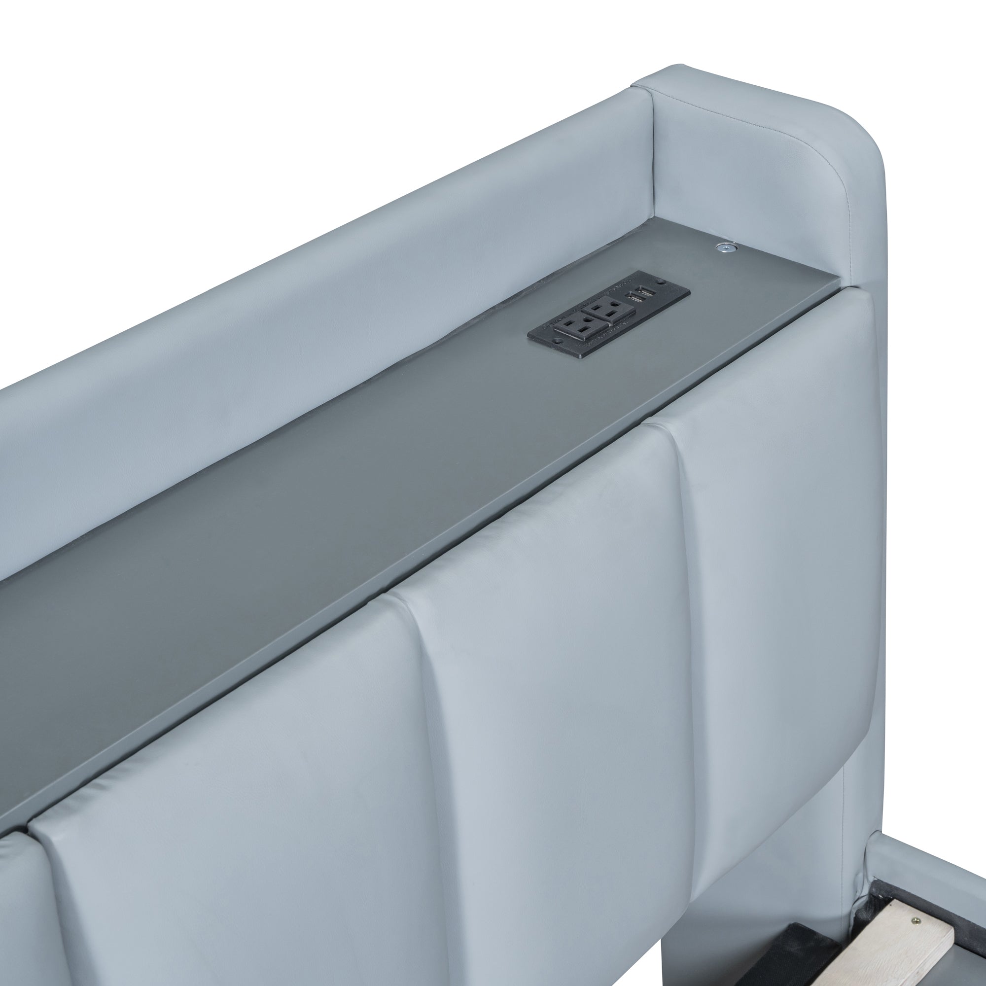 Queen Size & Twin XL Size Upholstered Platform Bed, Mother & Child Bed with Hydraulic Storage System, Drawer Box, Bedhead storage shelf and Two pairs of sockets & USB Ports, PU Leather, Gray