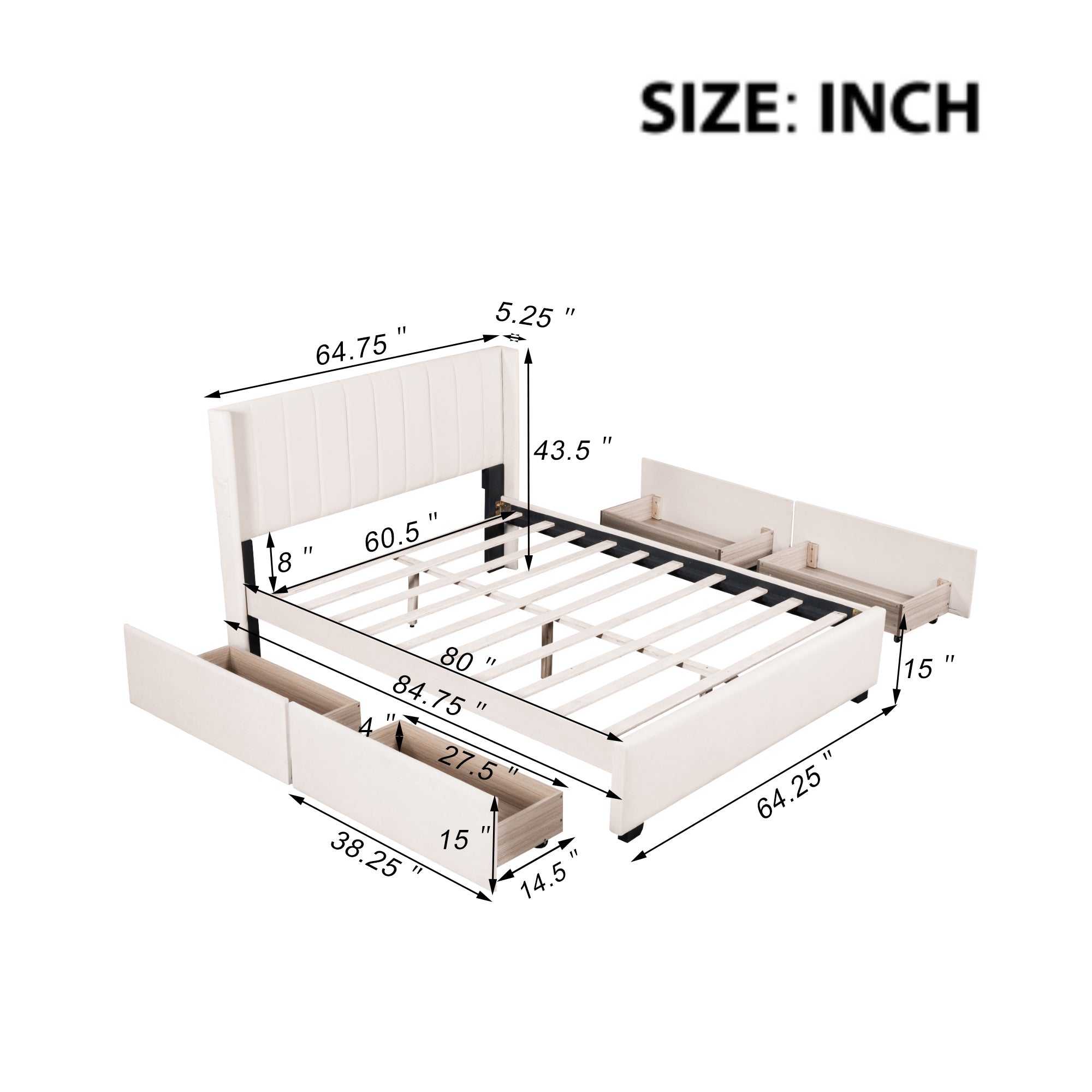 - [Dimensions] Overall Product Dimension: 84.75″L x64.75″W x 43.5″H. Mattress not included. Some assembly is required, although we have provided clear instructions and tools.