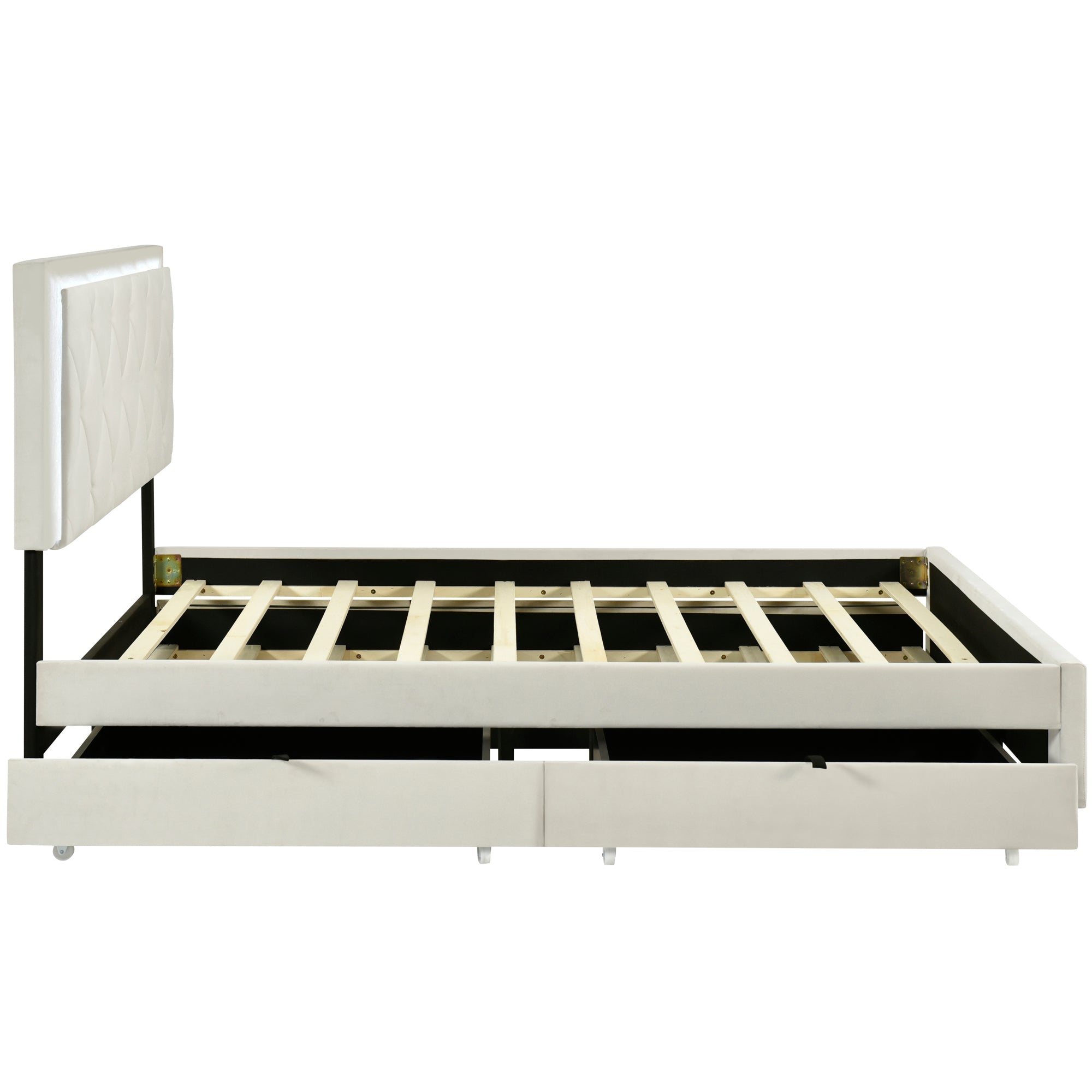 Be the first to review “Queen Size Velvet Storage Platform Bed, with 2 Big Drawers, Twin XL Size Trundle and LED Light, Beige” Cancel reply