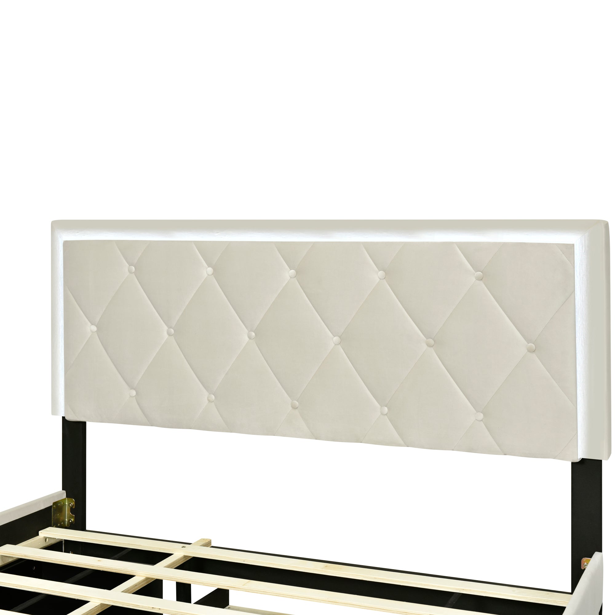 Velvet Storage Platform Bed with LED lights Plus Extra Sleeping Space