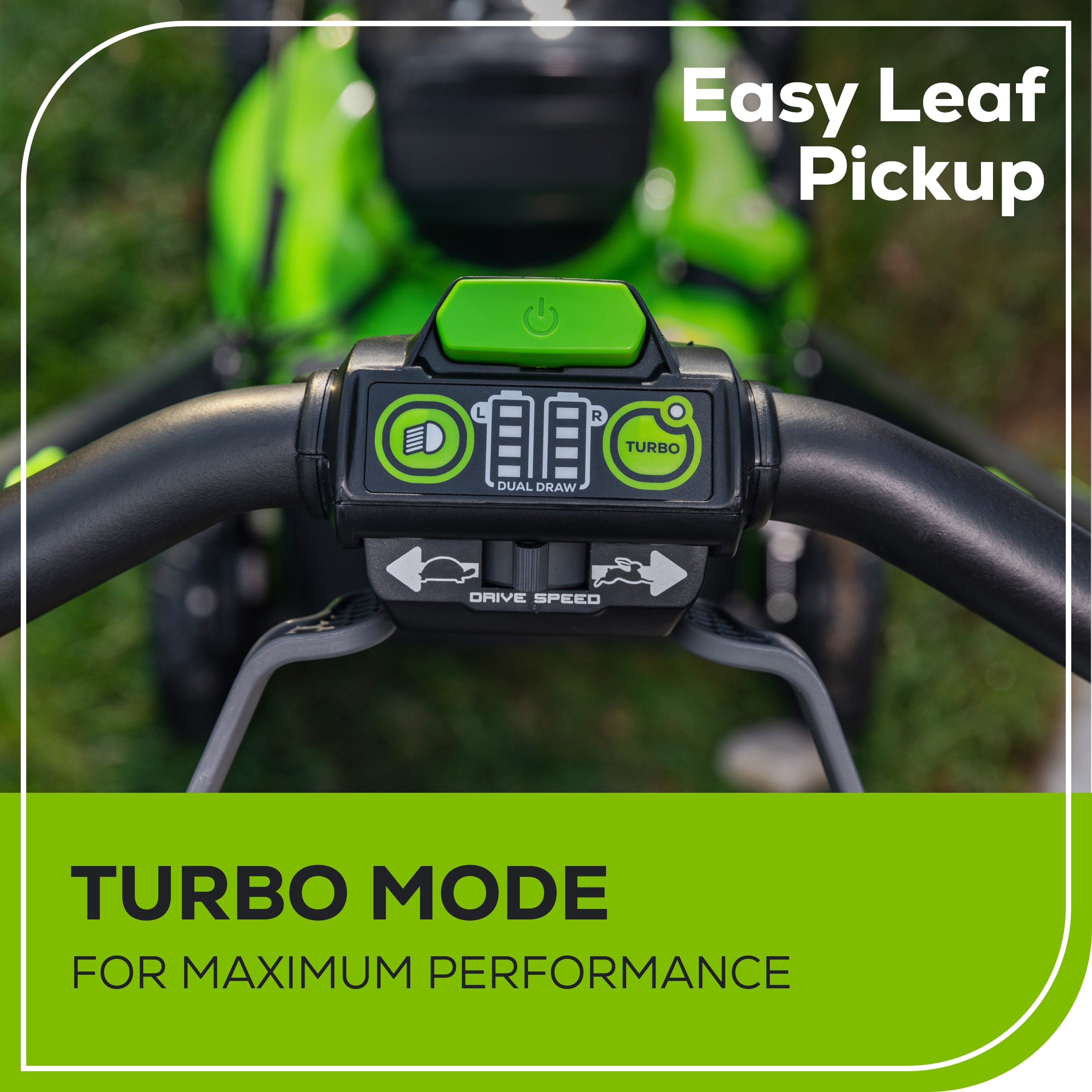 - 4-in-1 System: Mulch, Bag, Side Discharge, Turbo Leaf Pickup