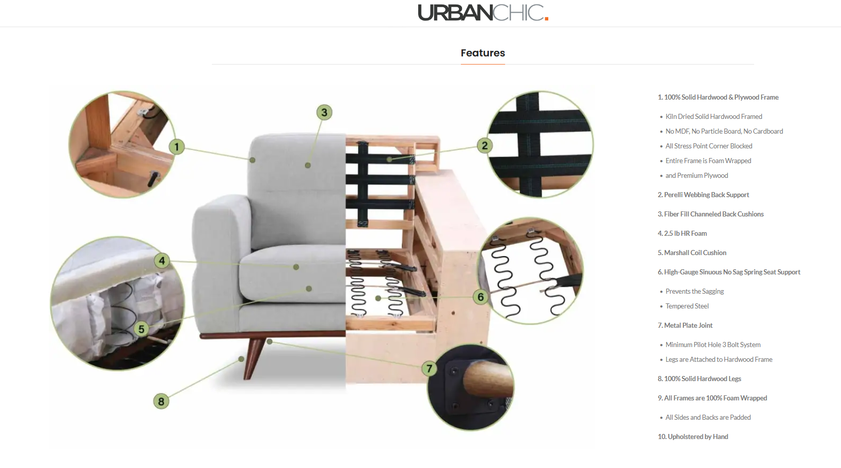 ● SPRING COIL SEAT CUSHIONS wrapped with High Density Foam covered with spun Nylon Topping for comfort