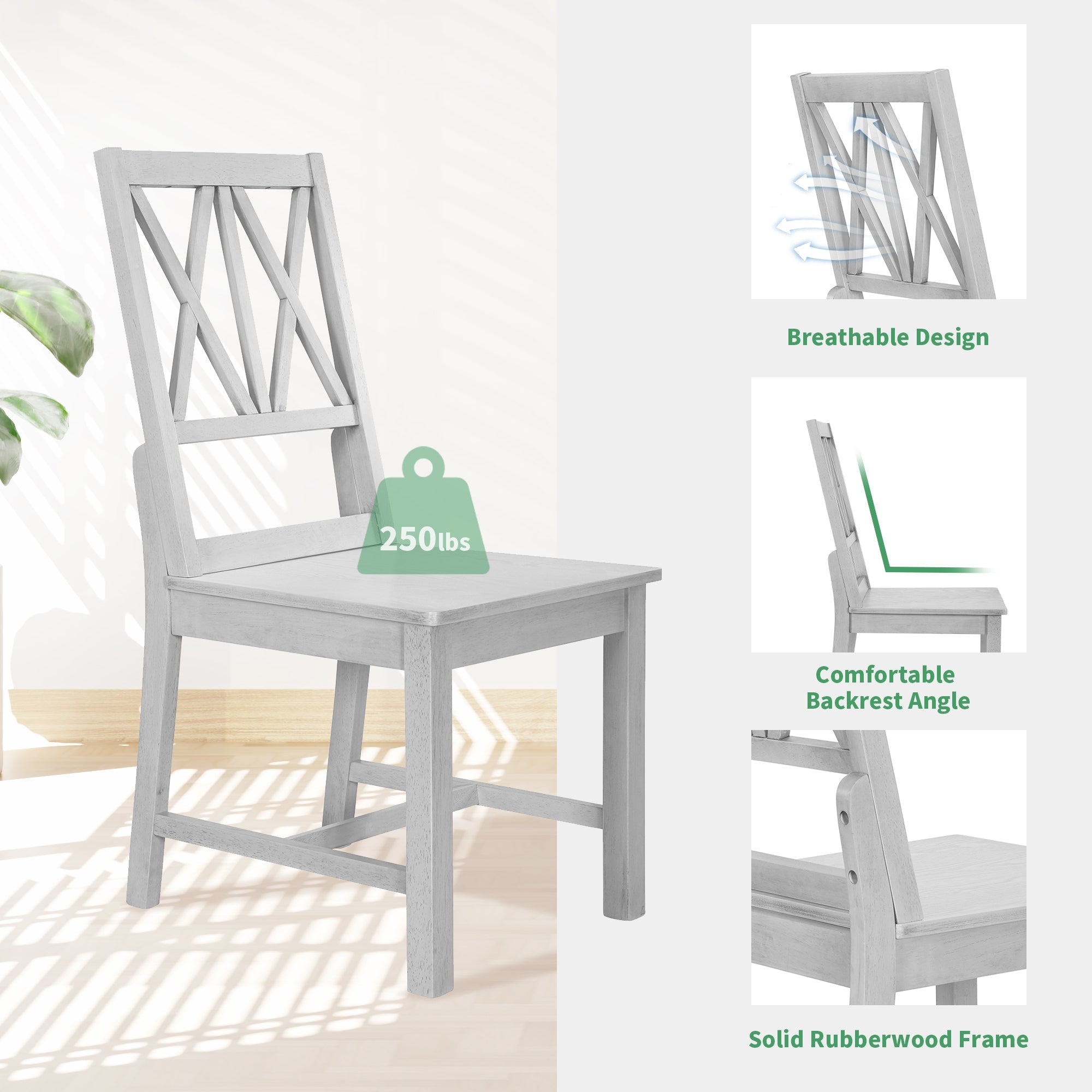 - [Solid Wood Construction] Crafted from MDF and rubberwood, this dining table set boasts durability and style. The tabletop features ash wood veneers, a premium choice for craftsmen, ensuring timeless quality. With solid wood chair legs and stylish backs, stability and durability are guaranteed. Each piece can support up to 250lbs, providing safety and reliability. Expertly designed and built, this set offers both functionality and elegance for any dining space.