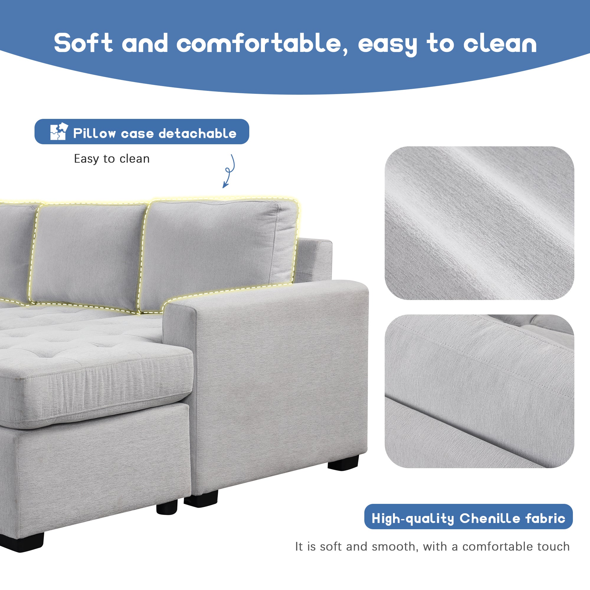 - Indulge in luxury: Made with high-quality Chenille fabric, our sofa offers a soft and comfortable seating experience. Sink into its plush cushions and feel the stress melt away. Filled with Baogongzi cotton, it provides an extra layer of coziness, ensuring you never want to leave its embrace.