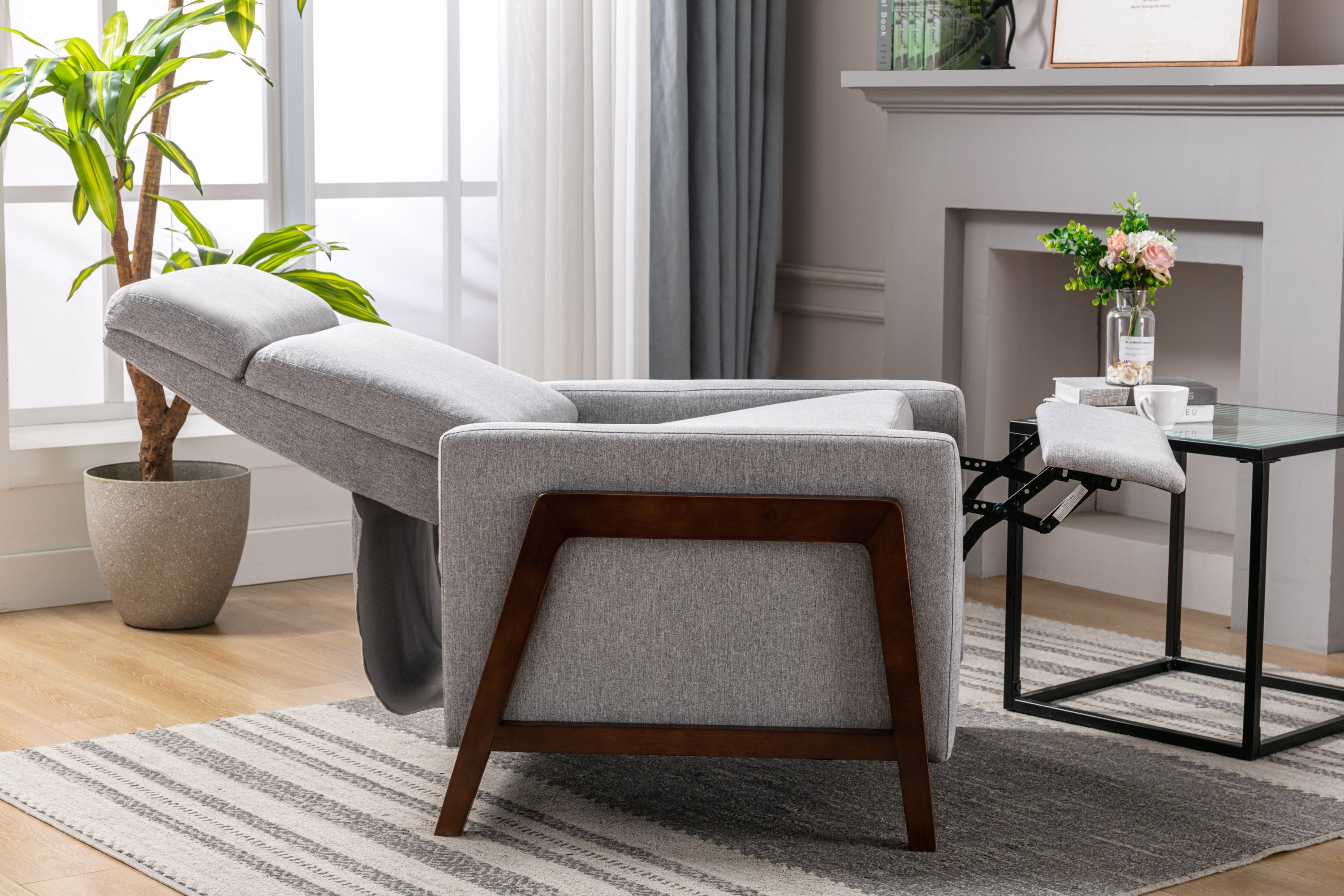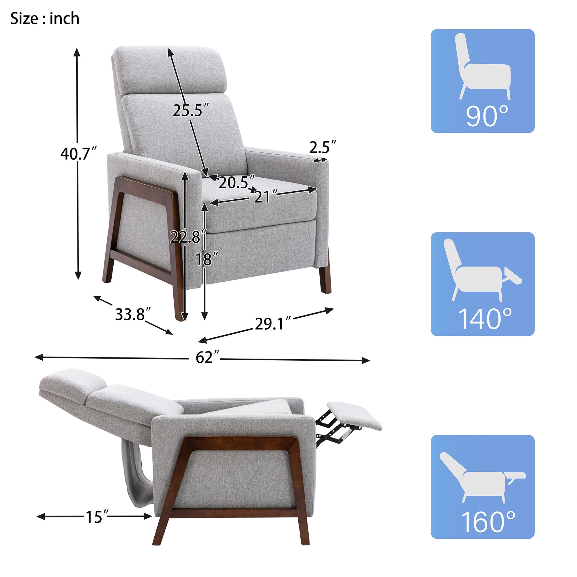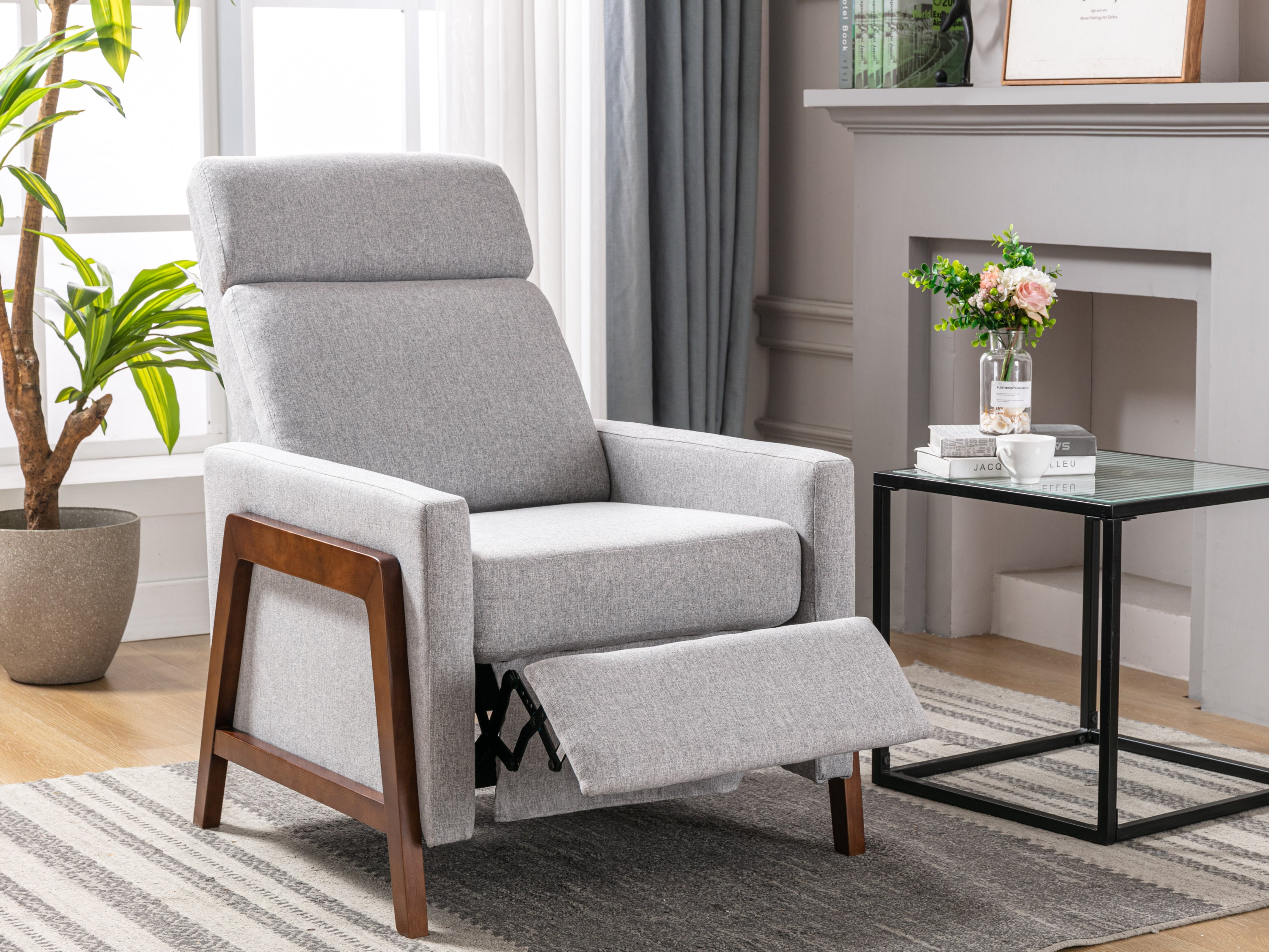 • MODERN DESIGN:With its show wood frame and mid-century silhouette, the Wood-Framed Recliner is upholstered in your choice of PU that only gets softer over time. Sit back and stay awhile.