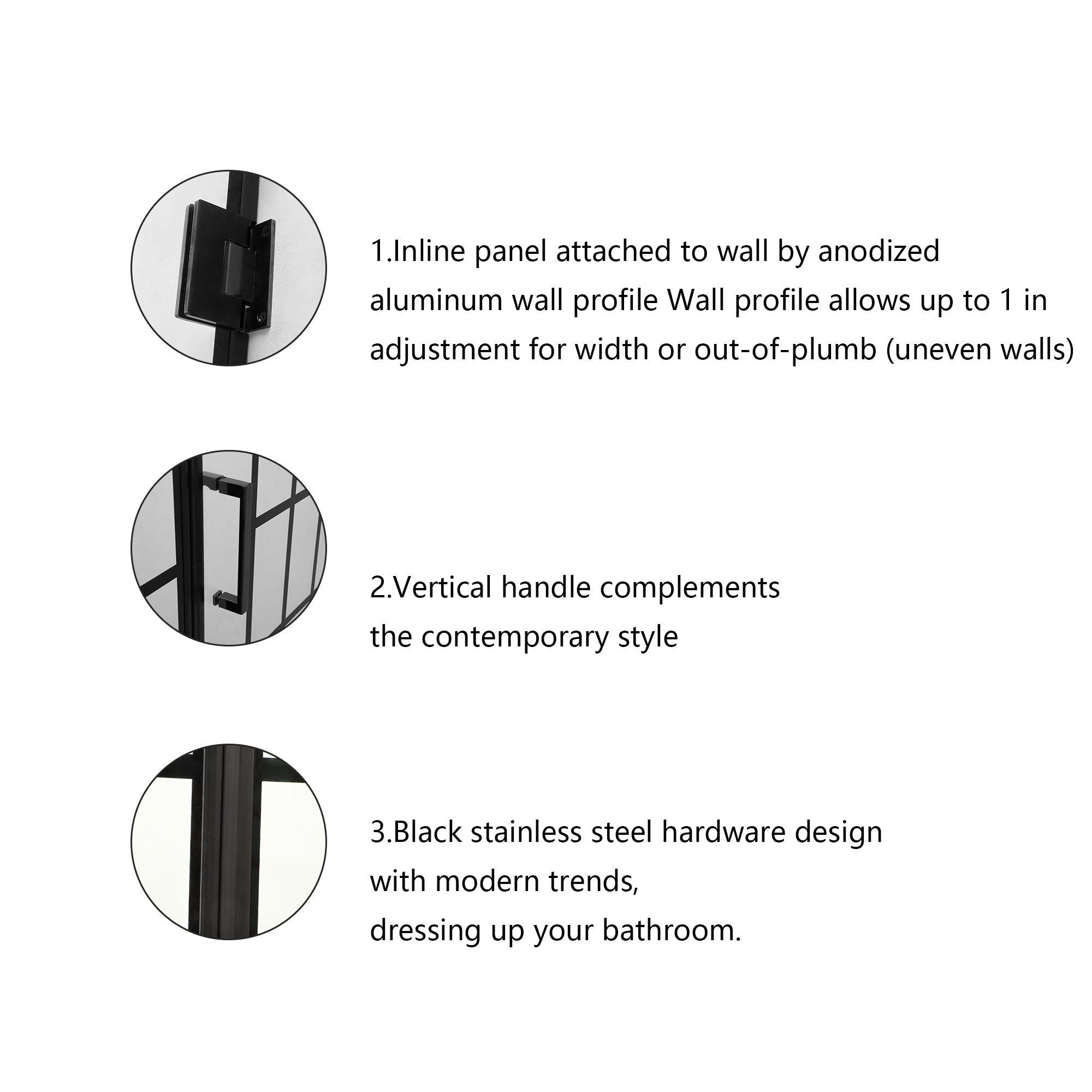 The shower or tub door offers a classic style with a modern touch. transform your bathroom with a beautiful balance of functionality, elegance, and sophistication. A variety of finishes and glass options will match any bathroom decor. Tempered glass, premium quality aluminum or stainless steel frame, accessories included. Professional installation is recommended. Shower Base not included, need to purchase separately.