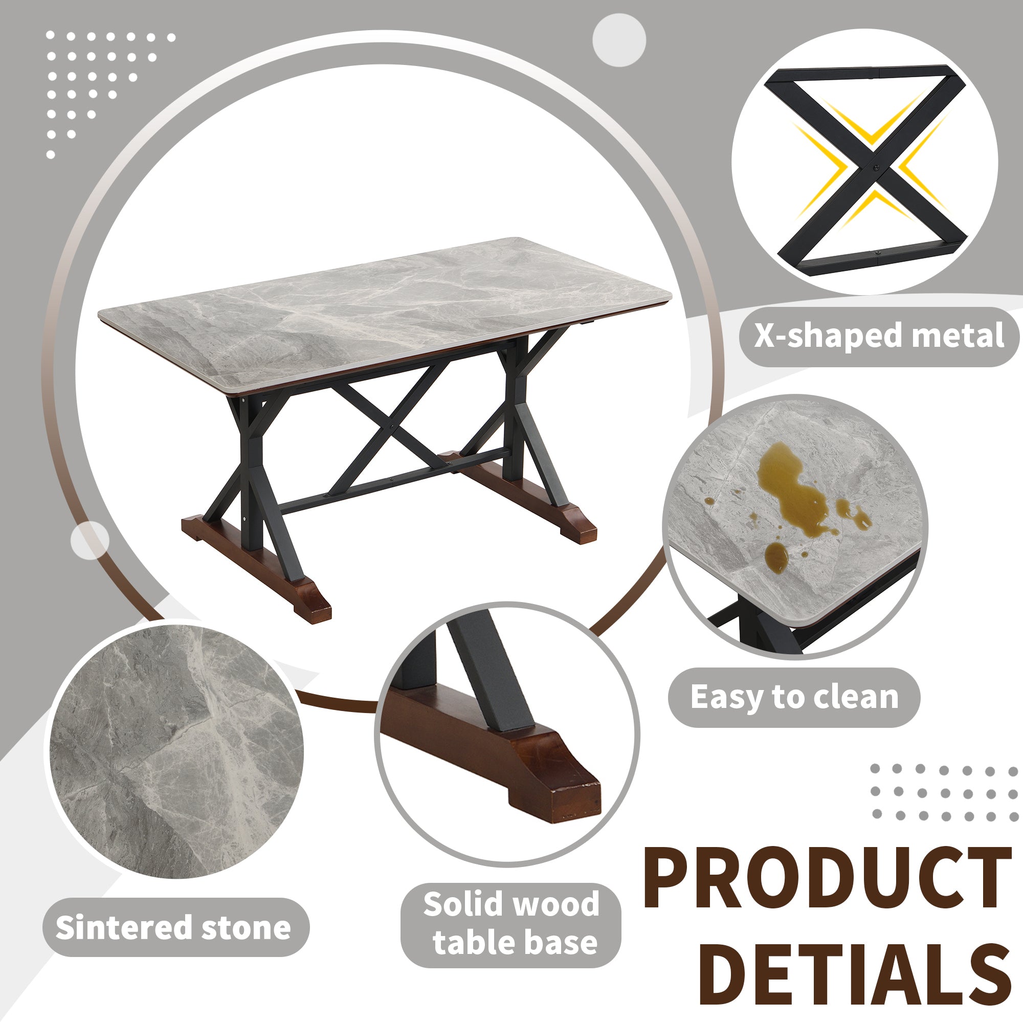 Be the first to review “Sintered Stone Dining Table, 63″ Modern Gray Rectangular Kitchen Dinner Table, Faux Marble Dining Room Table with X-shaped Metal Legs and Solid Wood Base, Scratch and Heat Resistant, Table Only” Cancel reply