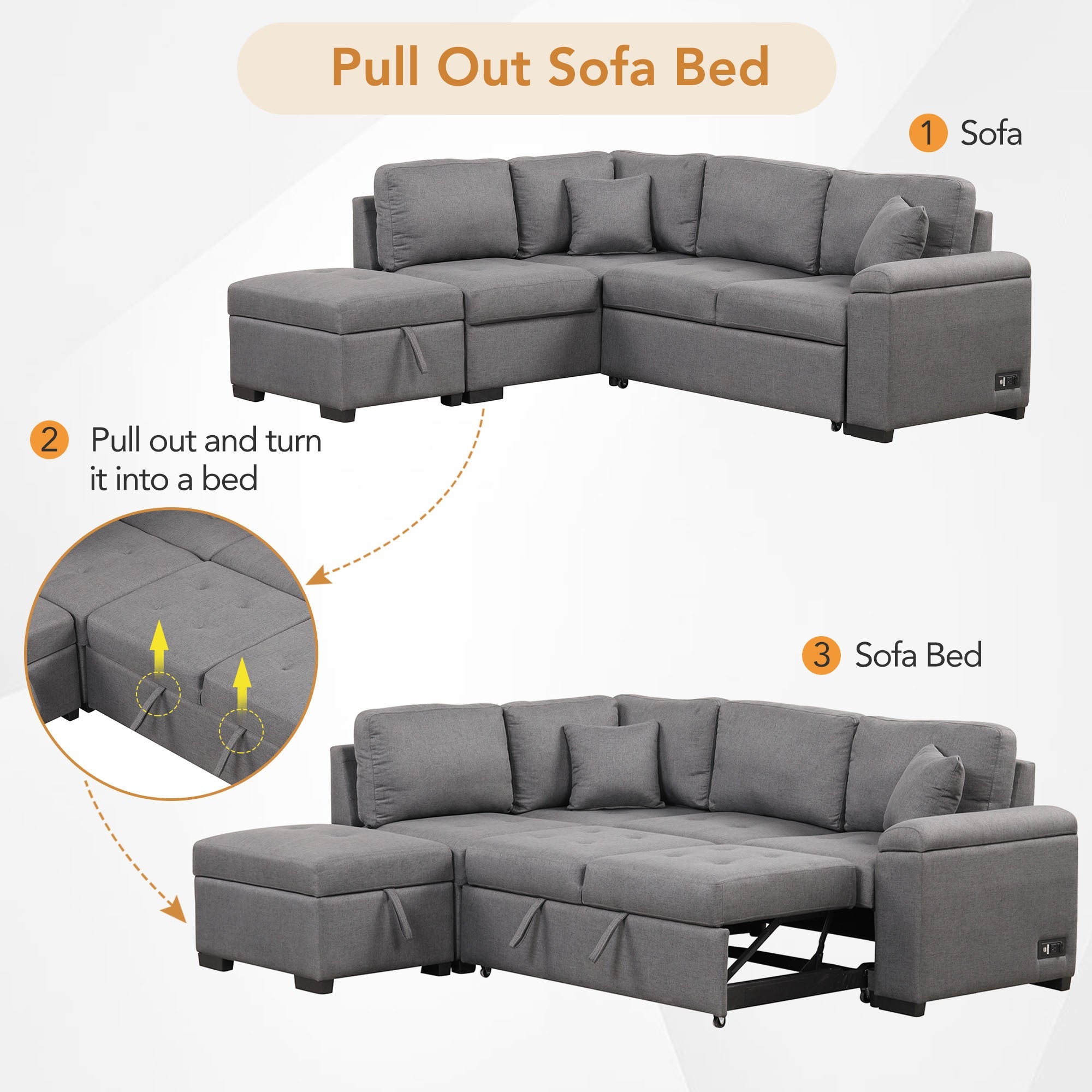 Be the first to review “Sleeper Sectional Sofa, L-Shape Corner Couch Sofa-Bed with Storage Ottoman & Hidden Arm Storage & USB Charge for Living Room Apartment, Dark Gray” Cancel reply