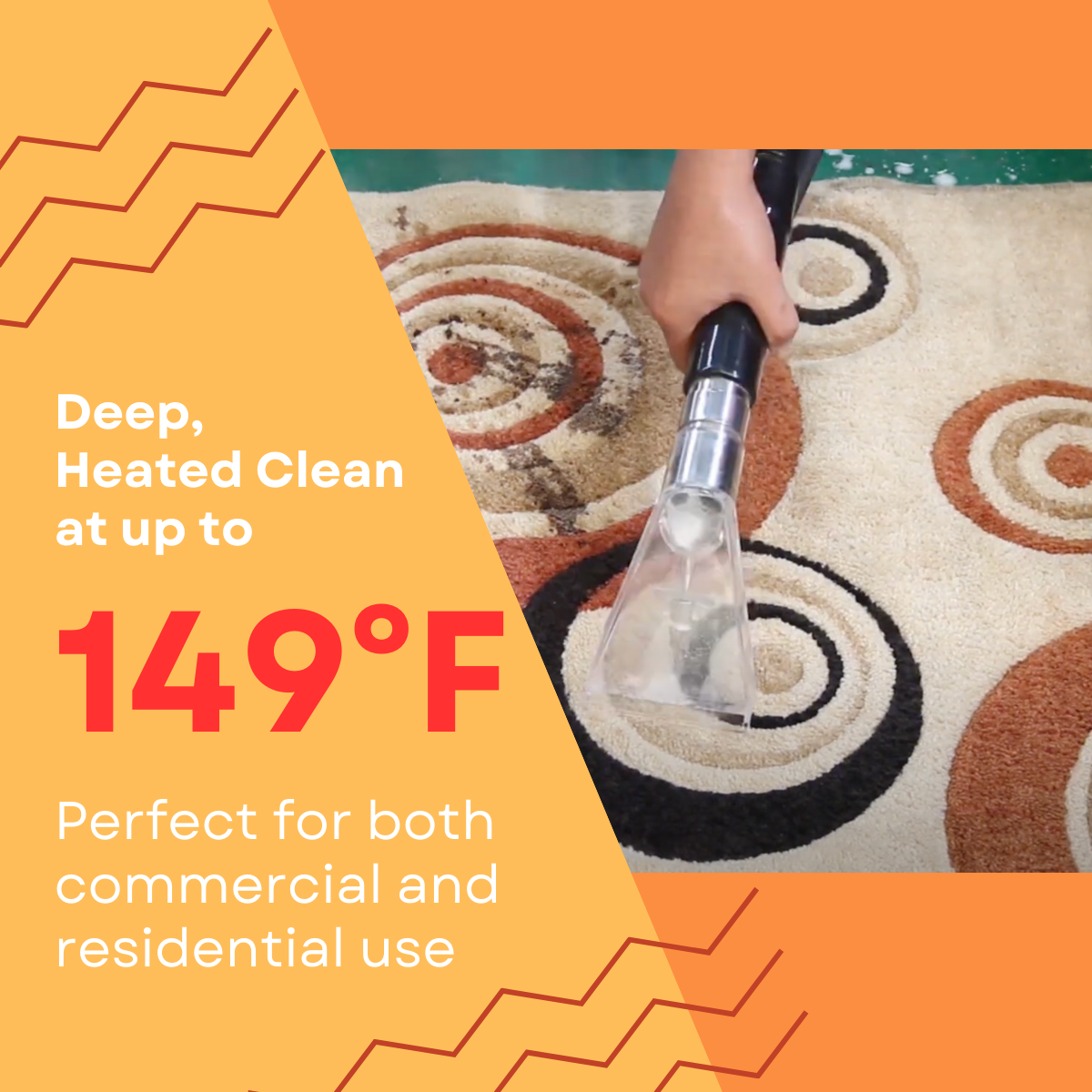 - Advanced Heated Cleaning: Dual-tank system with a powerful 1.74 HP heater for deep, heated clean at up to 149°F, perfect for both commercial and residential use.