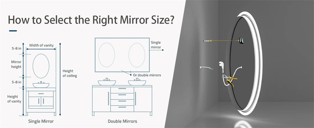 Easy Installation: The black lighted mirror can be directly plugged into a normal outlet or hardwired to a wall switch. You can use a wall switch or the touch button to turn the light ON/OFF. Mounting accessories are included, just mount the bracket to the wall and hang the mirror.