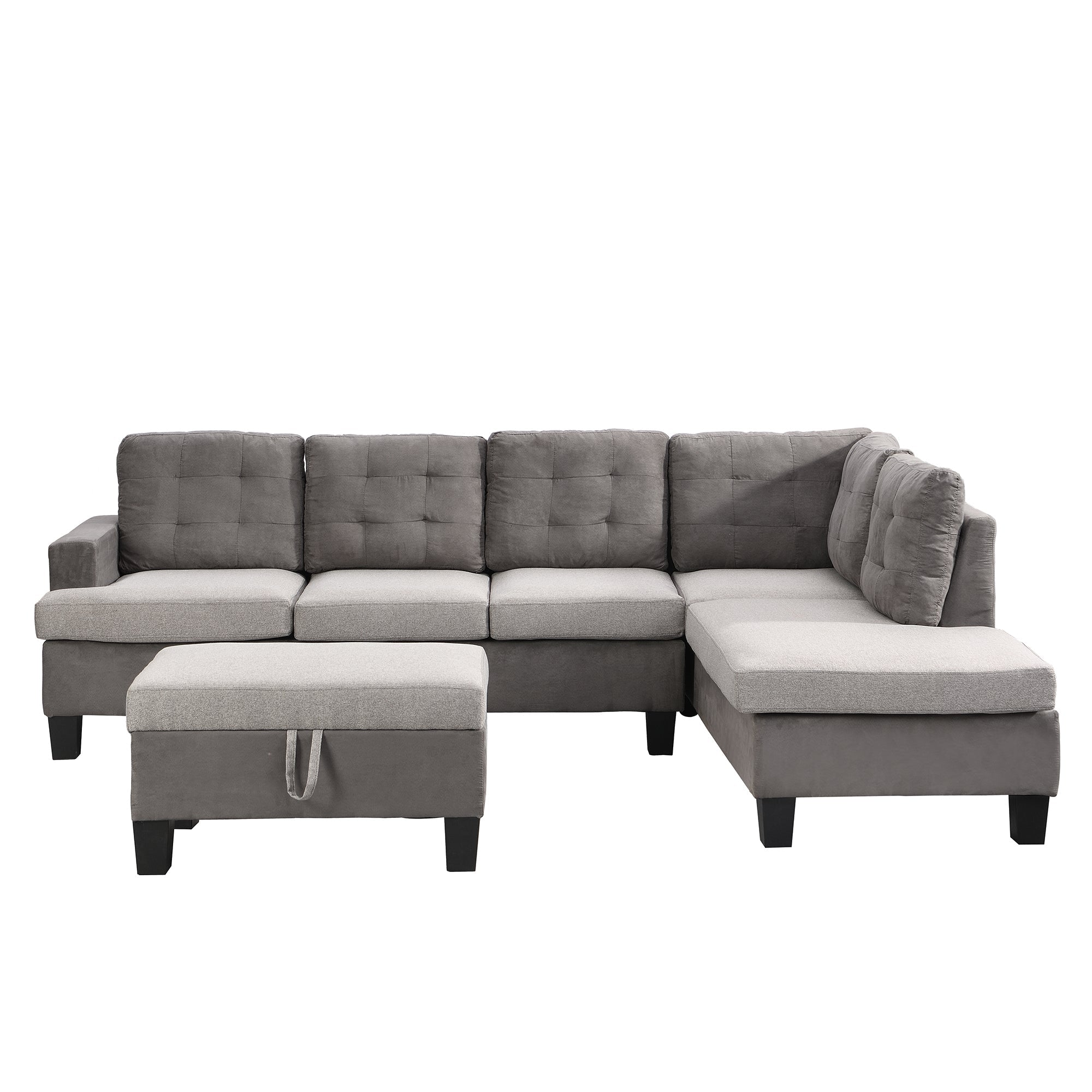 - 3-Piece sofa with loveseat and storage ottoman (Gray)
