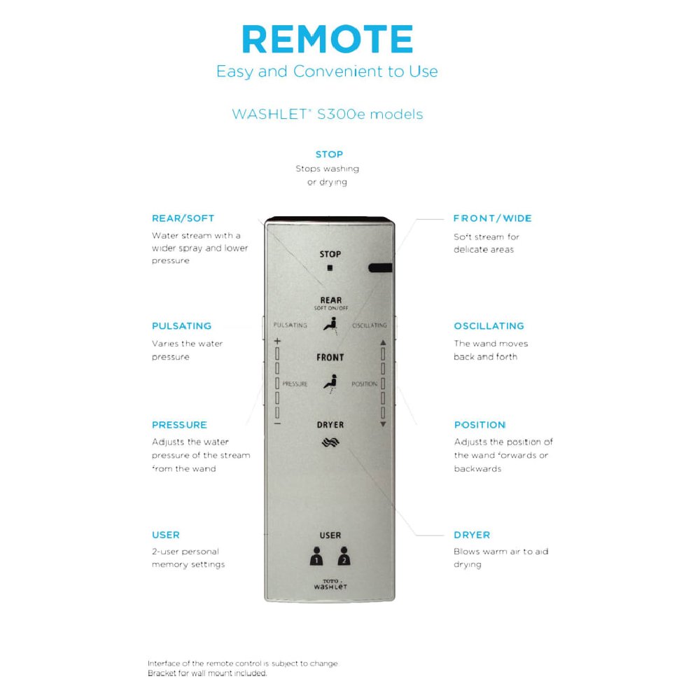 - With an illuminated remote that remembers your favorite settings for two users, operating the Washlet is a breeze. You’ll appreciate the convenience at your fingertips!