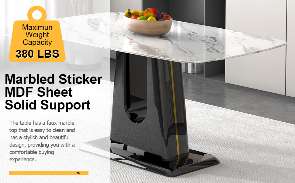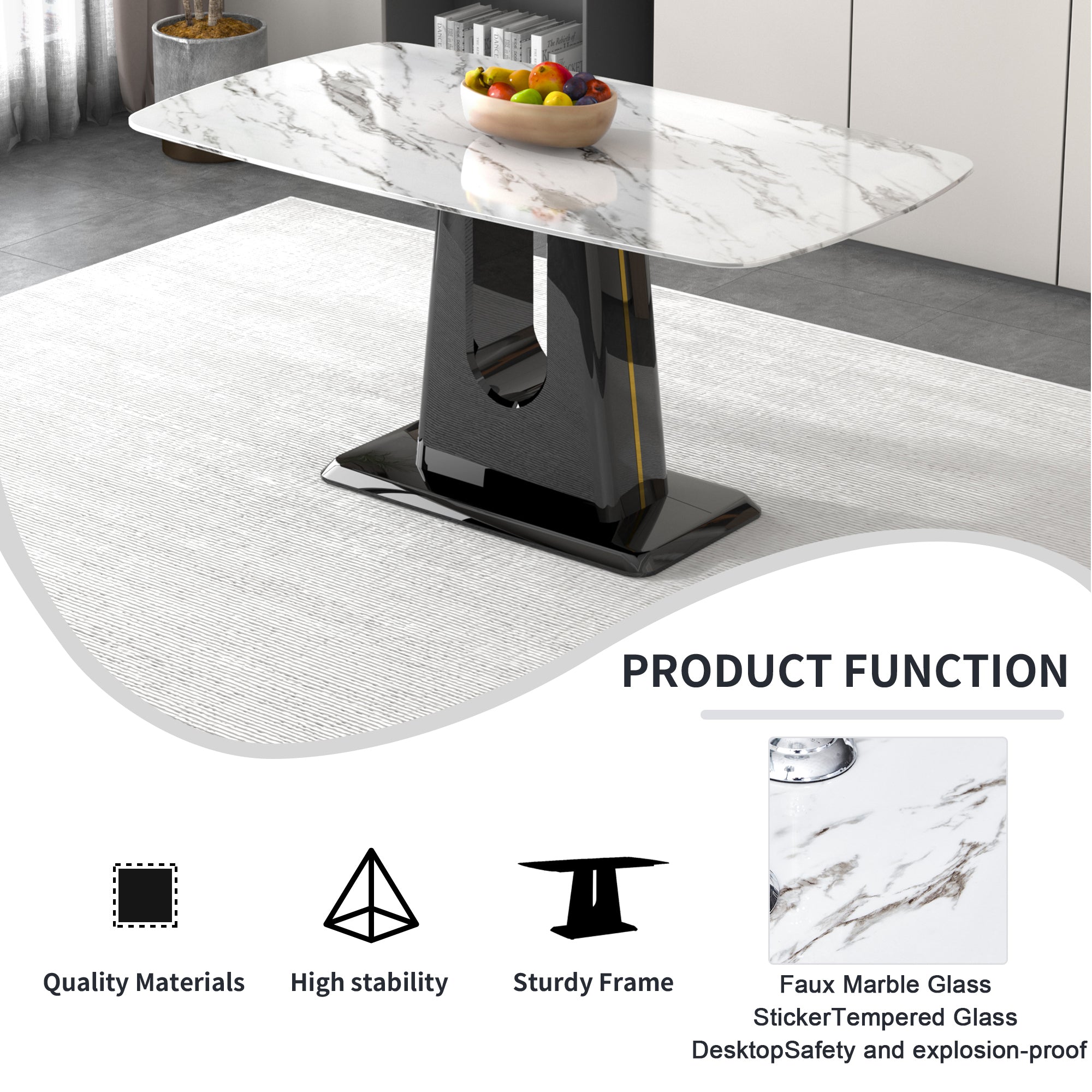 Table and chair set, modern and minimalist dining table, imitation marble patterned tabletop, MDF legs with U-shaped brackets. Paired with comfortable chairs, suitable for dining and living rooms.