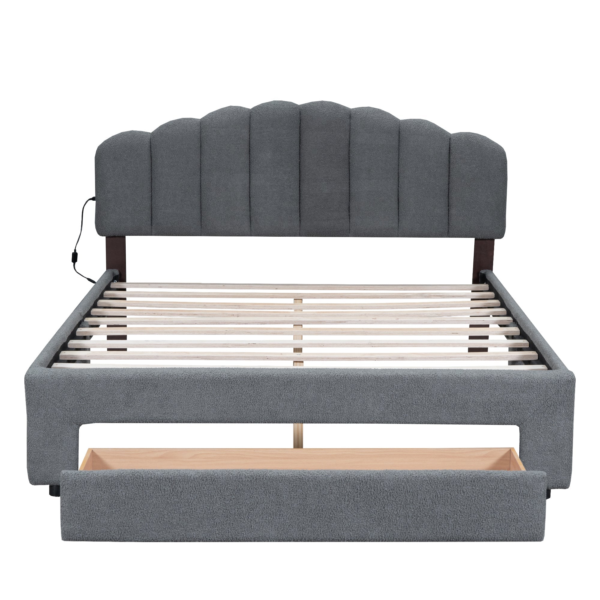 Be the first to review “Teddy Fleece Queen Size Upholstered Platform Bed with 1 Nightstand, Gray”