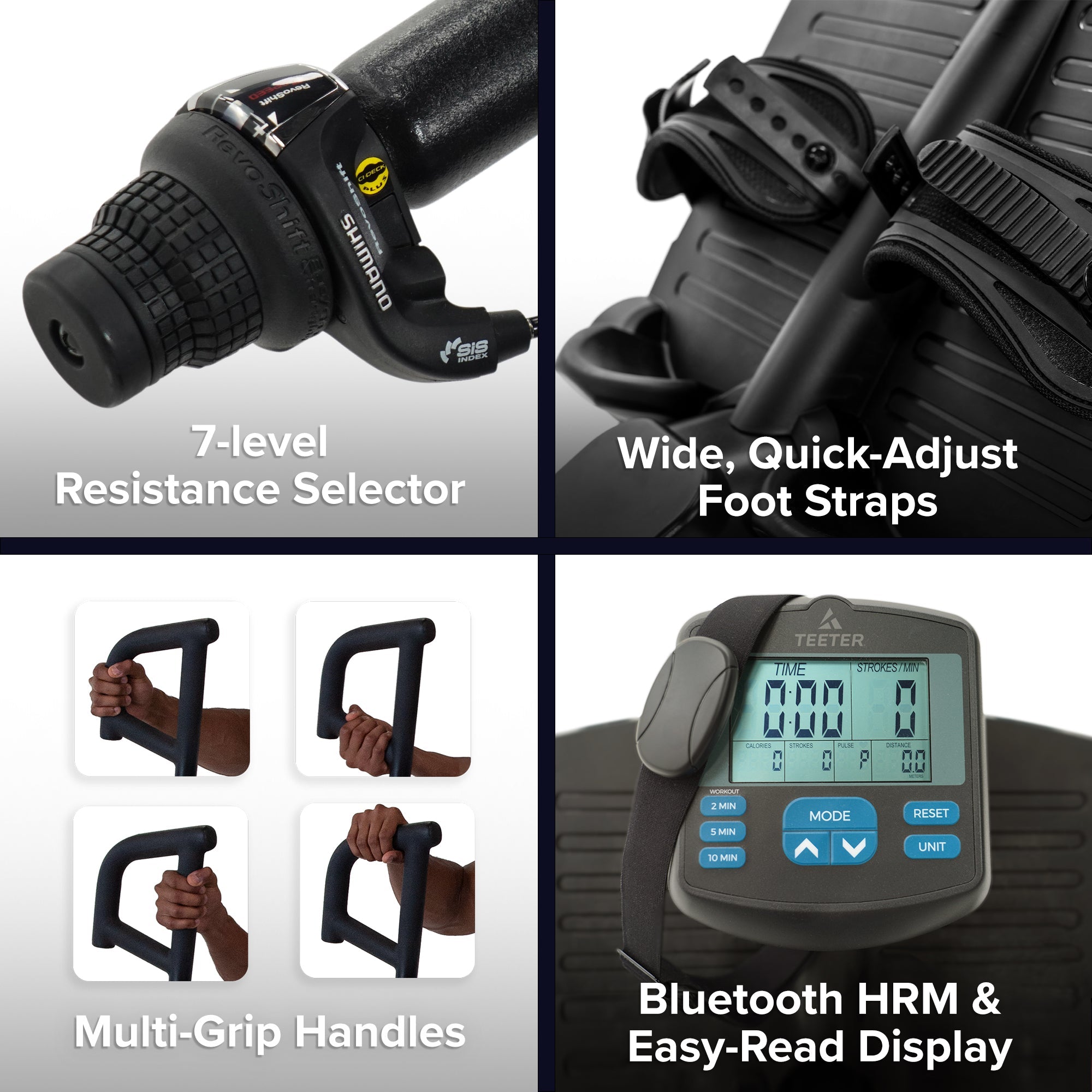 With its powerful pull and push resistance, smooth elliptical motion, and total body engagement, the TEETER Power10 Elliptical Rower delivers the ultimate strength-building and calorie-burning workout.