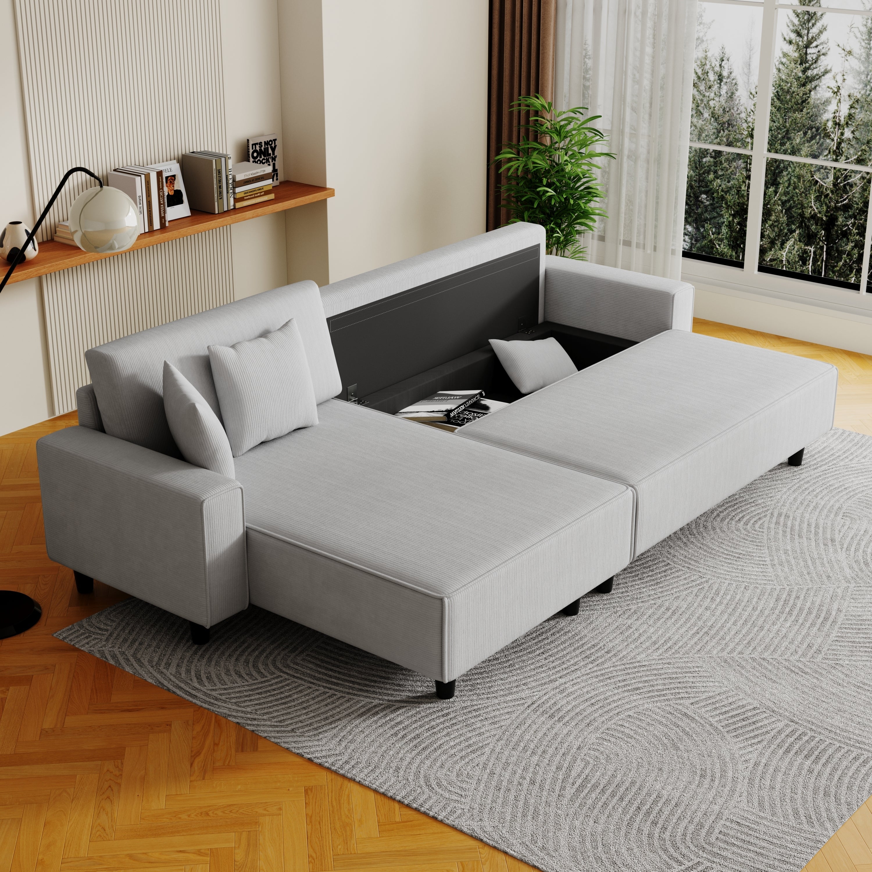- Try turning it into a bed and you’ll get a long pillow and storage on this sofa