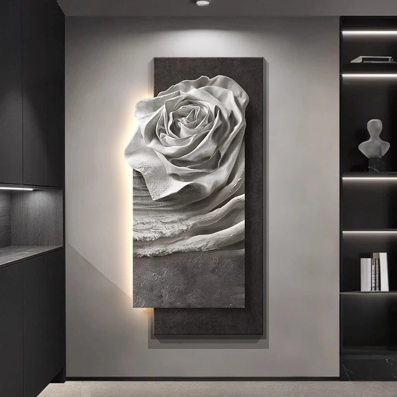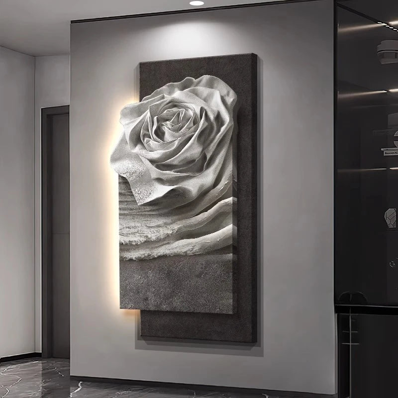 Elevate your home decor with KW’s top exquisite wall-mounted painting of a rose, meticulously crafted using advanced high-resolution technology, creating a stunning 3D effect. This artwork, inspired by the song “The Rose” by Bette Midler, began one night in the bedroom with a soft, elegant, sleek bedsheet that beautifully captures the delicate beauty of the flower (the rose), transforming any space into a sophisticated haven. Perfect for any room, it invites admiration and adds a touch of charm that will leave a lasting impression on all who enter.