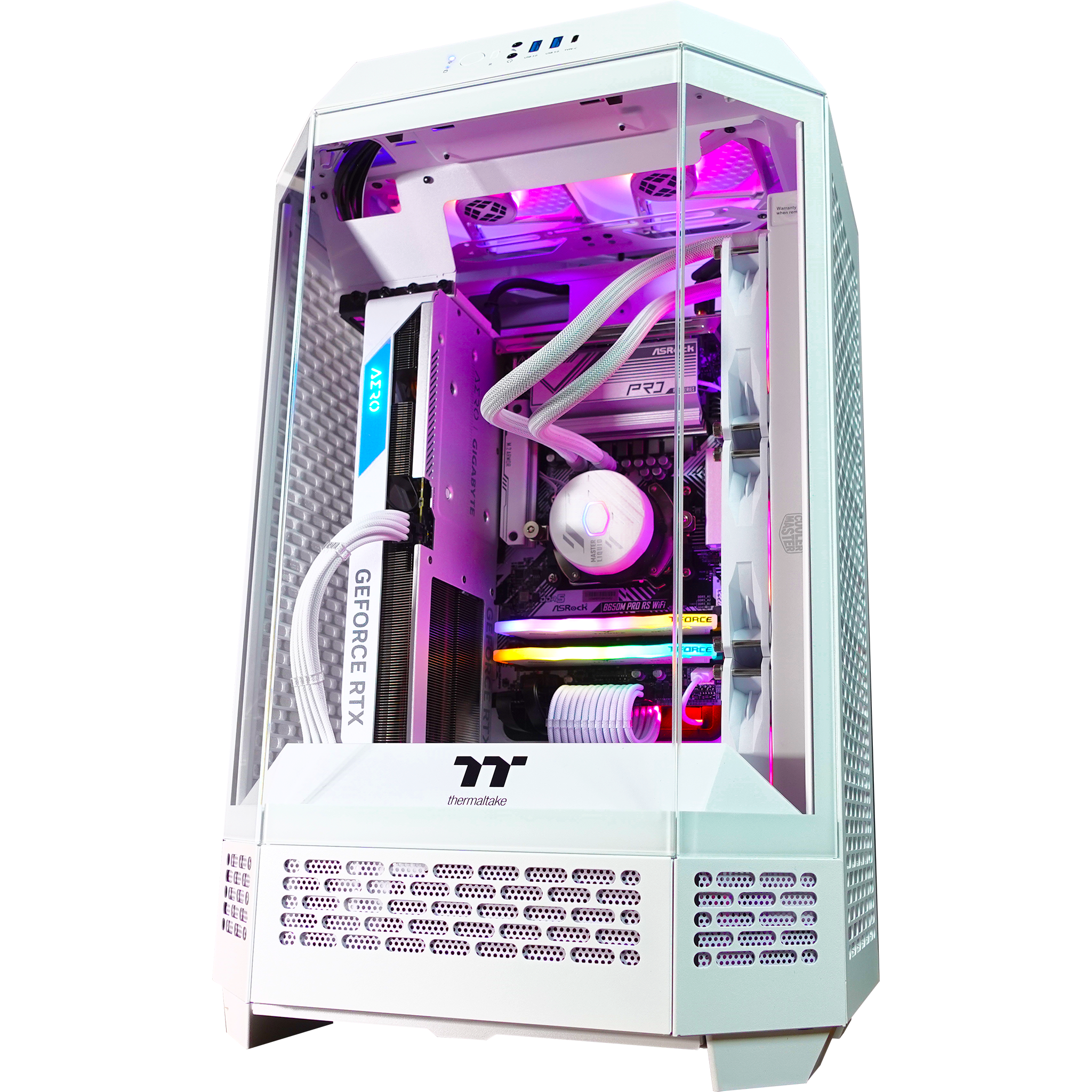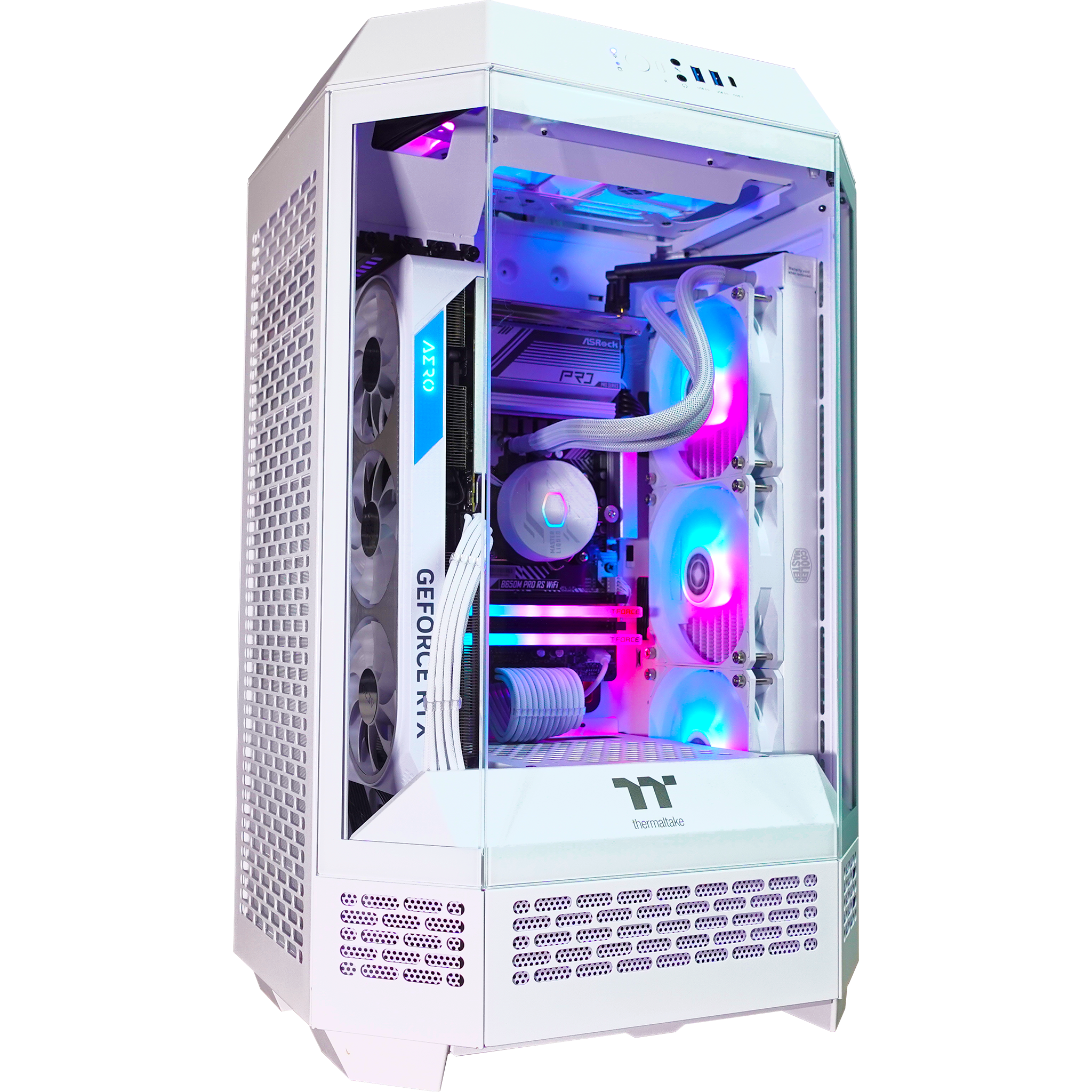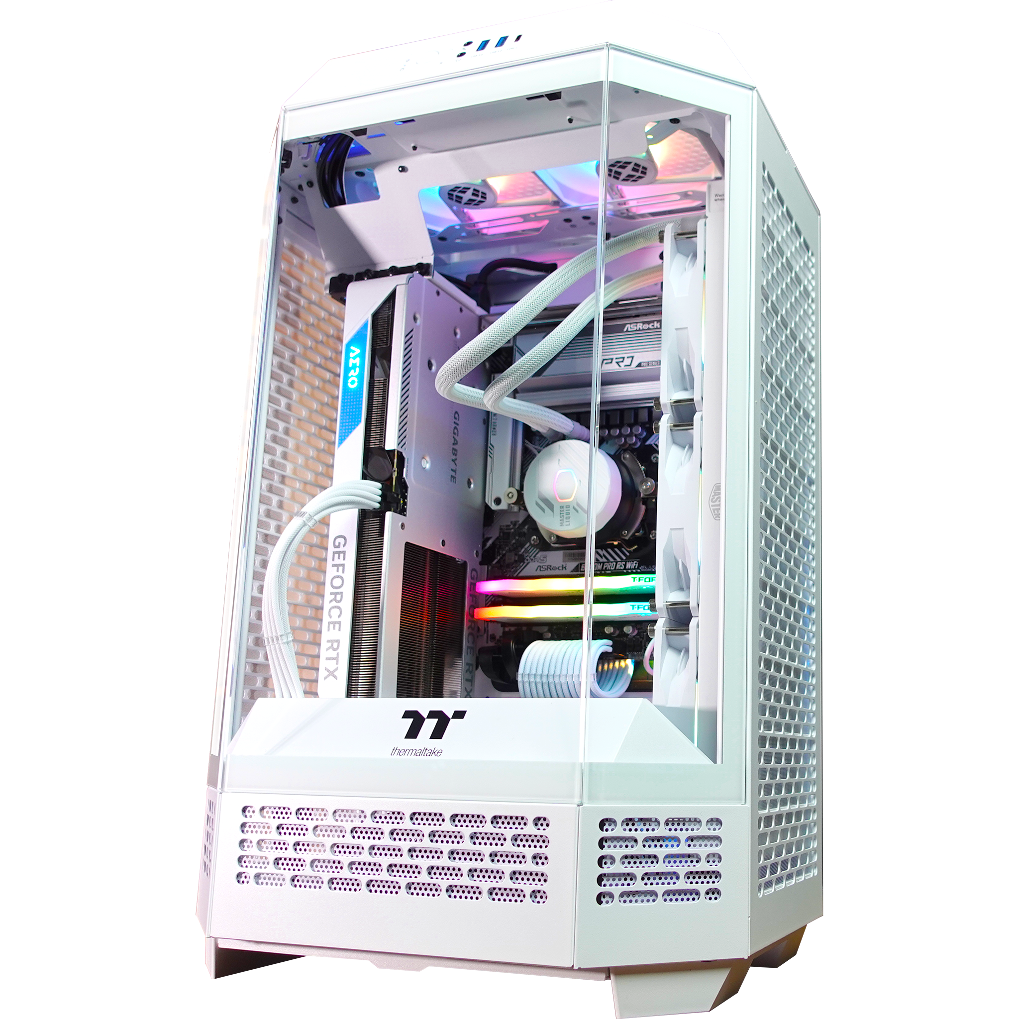 Create. Showcase. Dominate. The Thermaltake Tower Ghost Premier isn’t just a PC—it’s a statement. A fusion of design and function, its bold vertical layout and expansive tempered glass panels put your high-performance build on full display. Every angle. Every detail. Uncompromised.