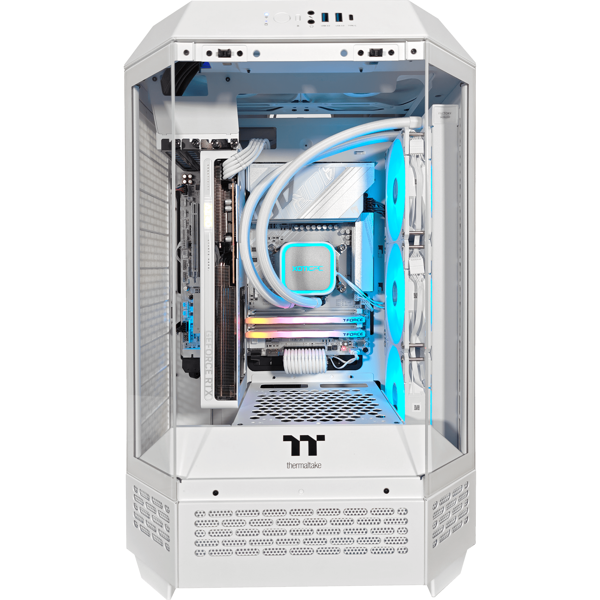 Create. Showcase. Dominate. The Thermaltake Tower Ghost Premier isn’t just a PC—it’s a statement. A fusion of design and function, its bold vertical layout and expansive tempered glass panels put your high-performance build on full display. Every angle. Every detail. Uncompromised.