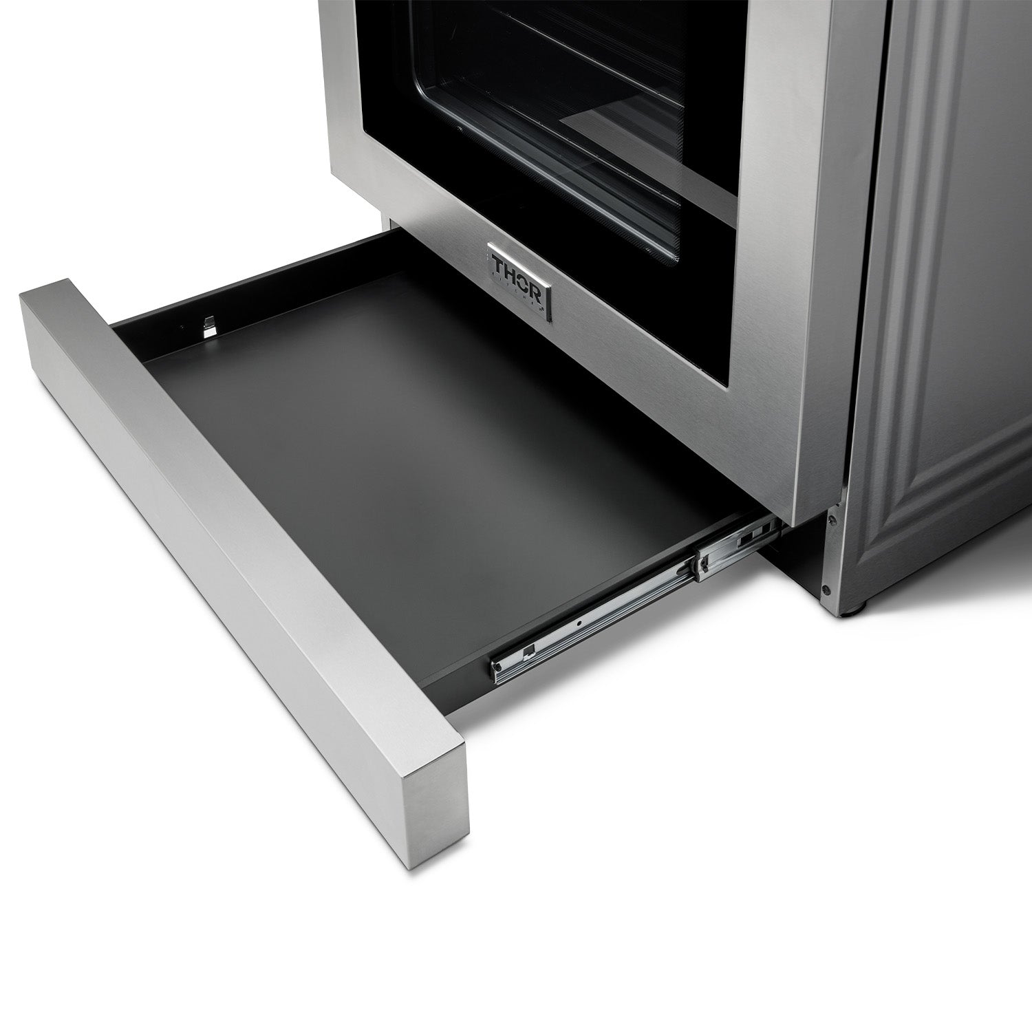 • Storage Space. Storage drawer provides additional storage space for cooking trays and other kitchen utensils